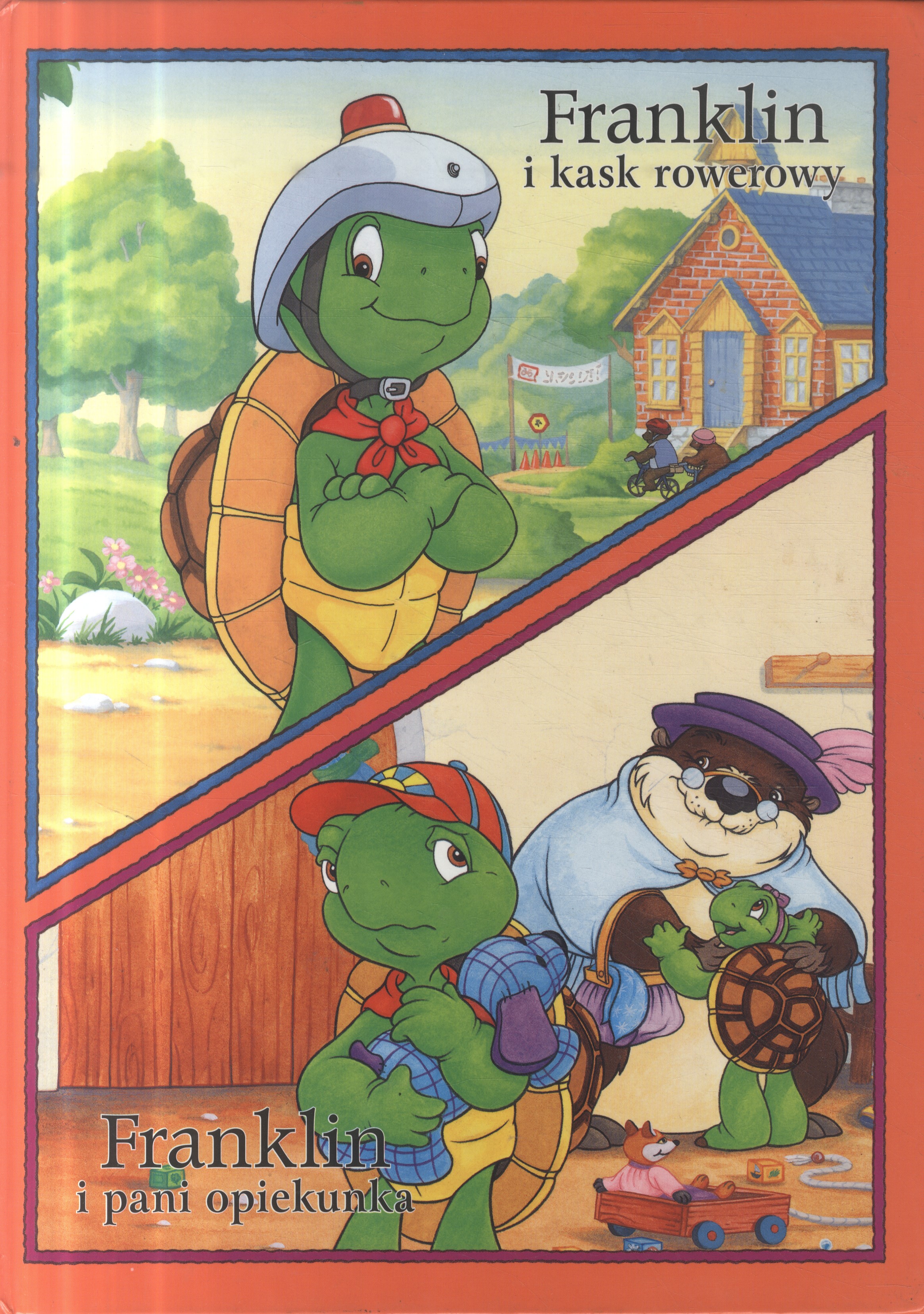 "Franklin i kask rowerowy": Franklin wybiera w sklepie sportowym bardzo nowoczesny i rzucający się w oczy kask. Nie podoba się on jednak kolegom. Czy żółwik będzie rozsądny i zdecyduje się na bezpieczną jazdę w wybranym przez siebie kasku? "Franklin i pani opiekunka": Rodzice Franklina wychodzą na przyjęcie, a z Franklinem i Harriet zamiast babci, która zachorowała ma zostać pani piżmak. Żółwik nie jest z tego zadowolony. [lubimyczytac.pl]