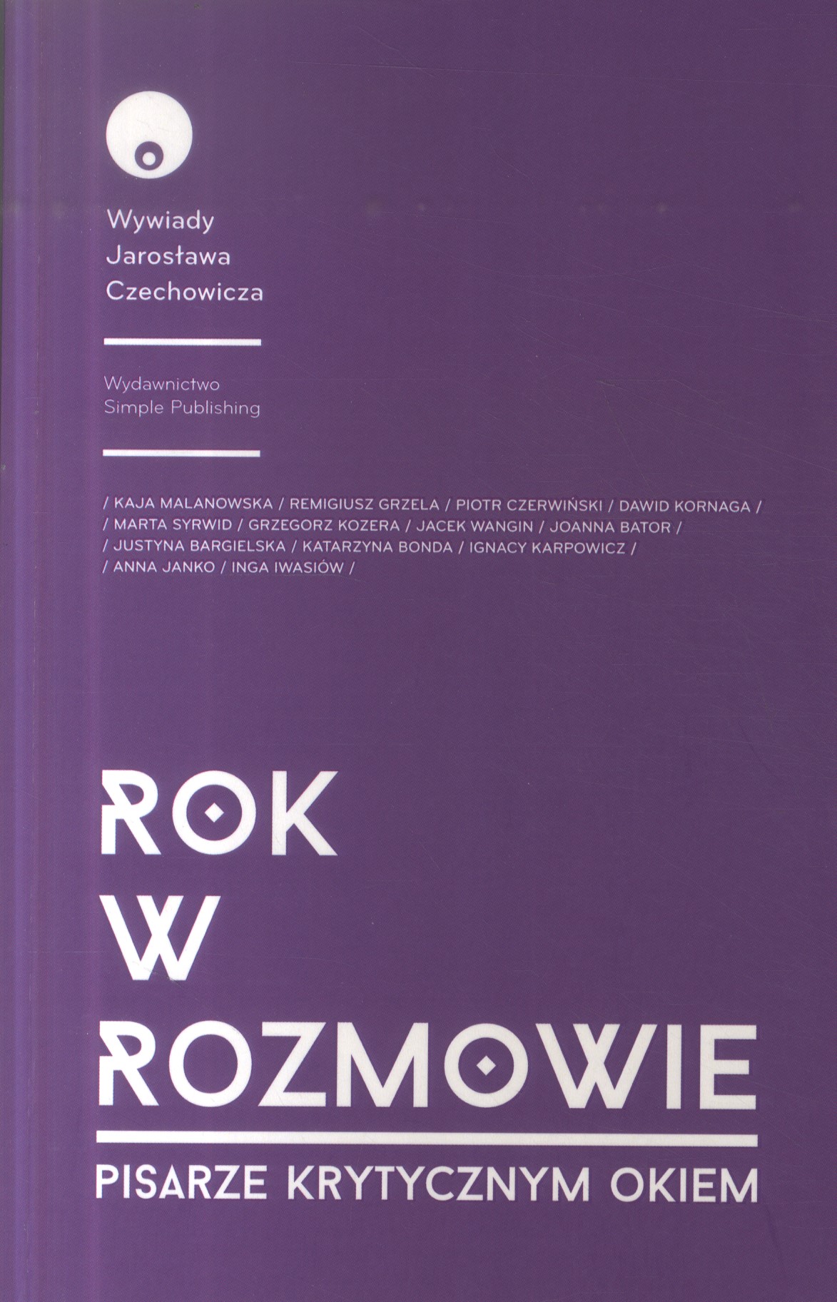 Na okładce nazwy autorów udzielających wywiadów: Kaja Malanowska, Remigiusz Grzela, Piotr Czerwiński, Dawid Kornaga, M<arta Sywid, Grzegorz Kozera, Jacek Wangin, Joanna Bator, Justyna Bargielska, Katarzyna Bonda, Ignacy Karpowicz, Anna Janko, Inga Iwasiów.