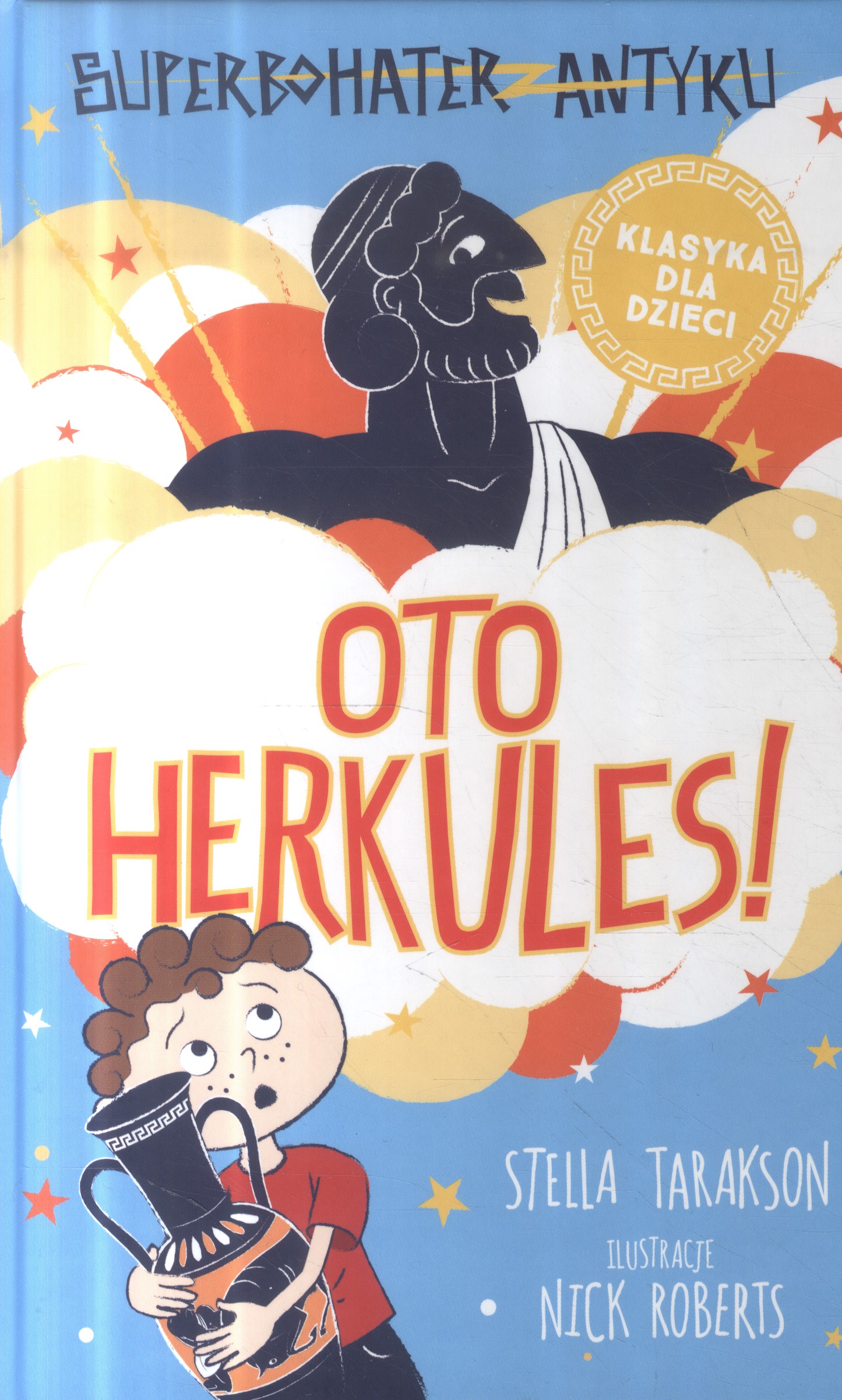 Pełne humoru i przygód wprowadzenie do mitów greckich: opowieść o chłopcu, który sprawdza na własnej skórze, jak to jest być bohaterem. Kiedy Tim stłukł antyczną wazę swojej mamy, był to tylko początek jego problemów. Wyzwolony z wazy superbohater – Herkules – może mu napytać biedy. Chce pomóc chłopcu, lecz jego wysiłki wywołują coraz większy zamęt. Trzeba go wysłać z powrotem do lamusa, zanim mama nie odeśle tam Tima.
