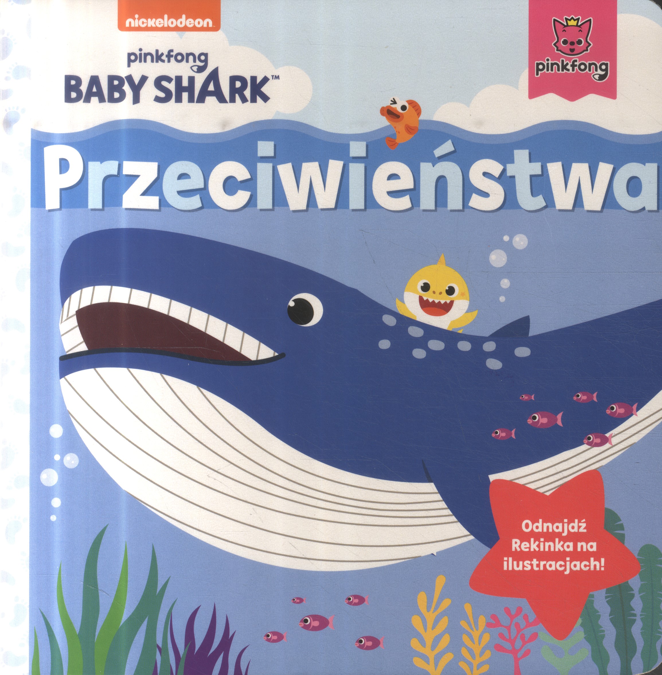 Wieloryb jest wieeeelki, a konik morski – malutki! "Baby Shark. Przeciwieństwa" to kartonowa książeczka, dzięki której twój maluch pozna wyrażenia związane z przeciwieństwami i nauczy się porównywać. To również świetne ćwiczenie spostrzegawczości – na każdej rozkładówce trzeba znaleźć ukrytego na ilustracji Rekinka. Bawcie się i uczcie wraz z bohaterami popularnej piosenki. Du, du, du!