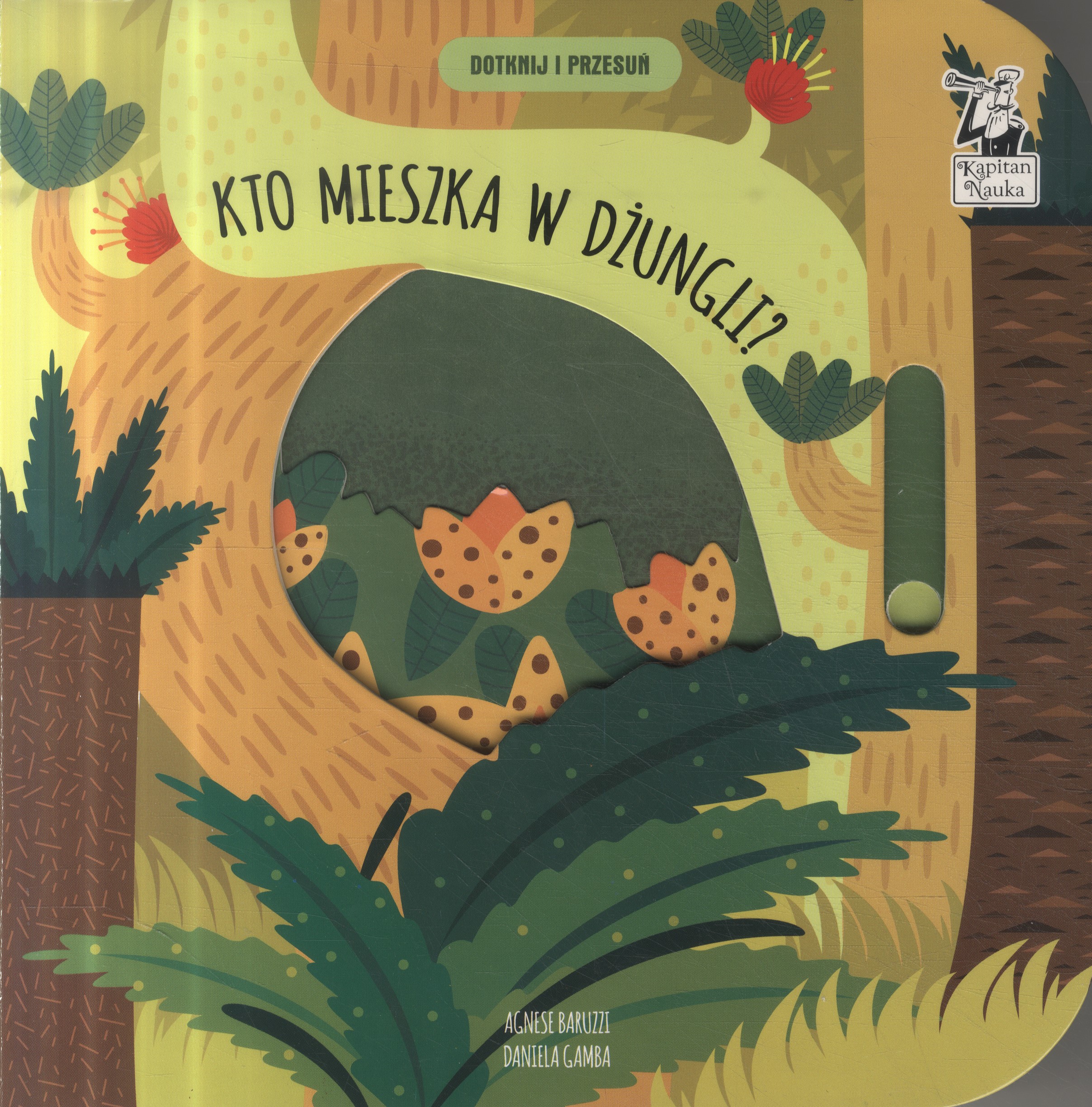 To inspirowana zabawą w „a kuku” książka dla maluchów, która ukazuje zaskakujące zmiany w dzikiej dżungli. Wystarczy jeden ruch paluszkiem, by odkryć, kto skrył się w liściach lub wśród egzotycznych kwiatów. Barwne ilustracje pozwalają dostrzec podobieństwa w przyrodzie oraz poznawać kolory i kształty.