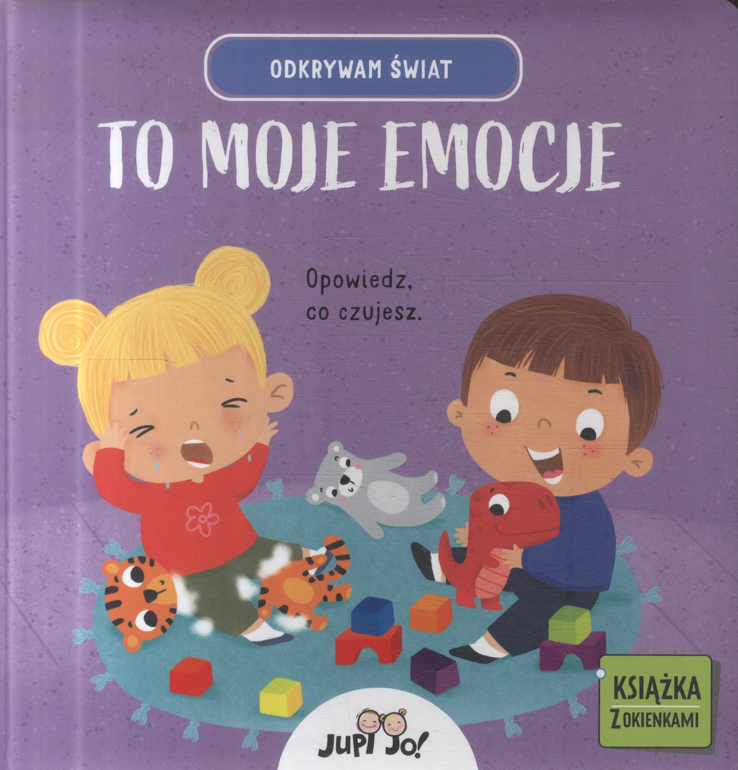 "To moje emocje" to książka z okienkowej serii Odkrywam świat. Wprowadza ona najmłodsze dzieci w świat podstawowych emocji, wyjaśnia czym są, pomaga je rozumieć i rozpoznawać.
