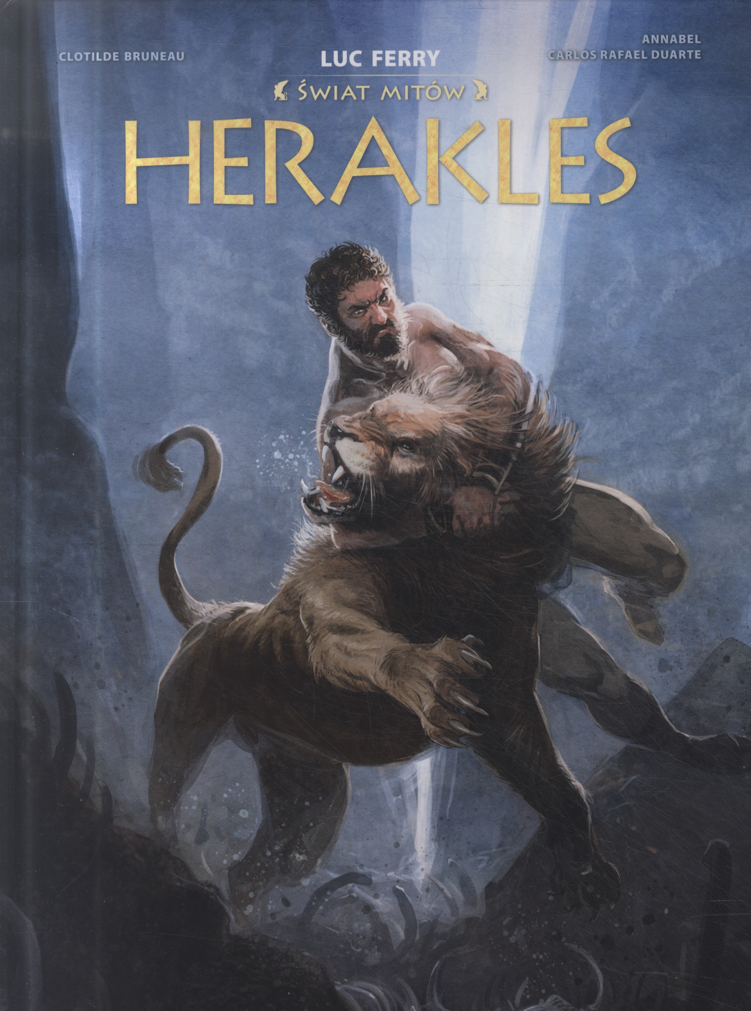 Seria „Świat mitów” przedstawia najbardziej znane greckie mity i starożytne opowieści w wersji komiksowej. Komiksy zostały napisane i narysowane przez francuskich twórców pod merytoryczną opieką Luca Ferry`ego, znanego filozofa i publicysty, znawcy dziejów starożytnych. Niniejszy tom opowiada mit o Heraklesie – greckim herosie charakteryzującym się niezwykłą siłą i odwagą, a jednocześnie okrutnie doświadczonym przez los, którego większość życia upłynęła na wykonywaniu dwunastu niezwykle trudnych i niebezpiecznych prac. Scenariusz tego albumu napisała francuska artystka i rysowniczka Clotilde Bruneau, natomiast rysunki są dziełem francuskiej rysowniczki Annabel oraz brazylijskiego artysty Carlosa Rafaela Duarte.