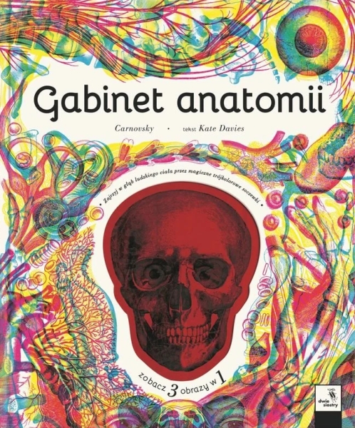 Prześwietl ludzkie ciało od stóp do głów. Dowiedz się, jak serce pompuje krew, sprawdź, co się dzieje, kiedy oddychasz, policz kości w szkielecie i zajrzyj w głąb mózgu. Poznaj budowę i działanie najważniejszych części ciała w najbardziej zadziwiającym gabinecie anatomii pod słońcem! Dzięki pomysłowej technice graficznej wykorzystanej przez duet Carnovsky każda z kolorowych ilustracji skrywa w sobie trzy „warstwy”. Obejrzysz je przez kolorowe filtry dołączone do książki. Przez czerwony zobaczysz szkielet, przez zielony – mięśnie, a przez niebieski – narządy wewnętrzne. Książka składa się z 10 rozdziałów prezentujących poszczególne części ciała, narządy i układy. W każdym rozdziale znajduje się zwięzły opis danej części ciała i jej działania, wielkoformatowe barwne ilustracje do oglądania przez barwne filtry oraz szczegółowe informacje o wybranych narządach zaprezentowane na czarno-białych ilustracjach stylizowanych na dawne ryciny anatomiczne. Barwne ilustracje można oglądać także za pomocą telefonu komórkowego, korzystając ze strony rgb-lens.carnovsky.com/