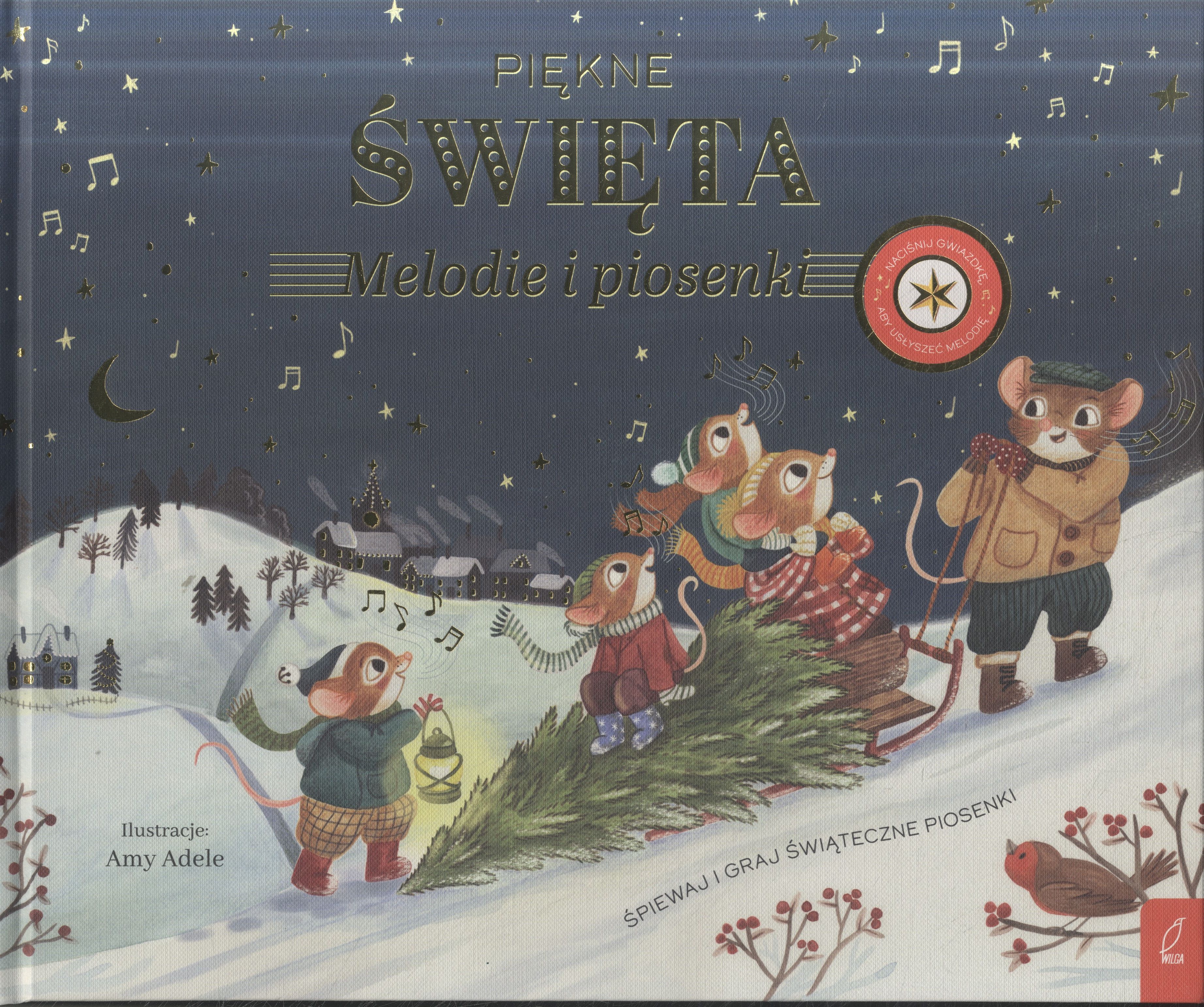 Na okładce: śpiewaj i graj świąteczne piosenki. Naciśnij gwiazdkę aby usłyszeć melodię. Książka z modułem dźwiękowym.