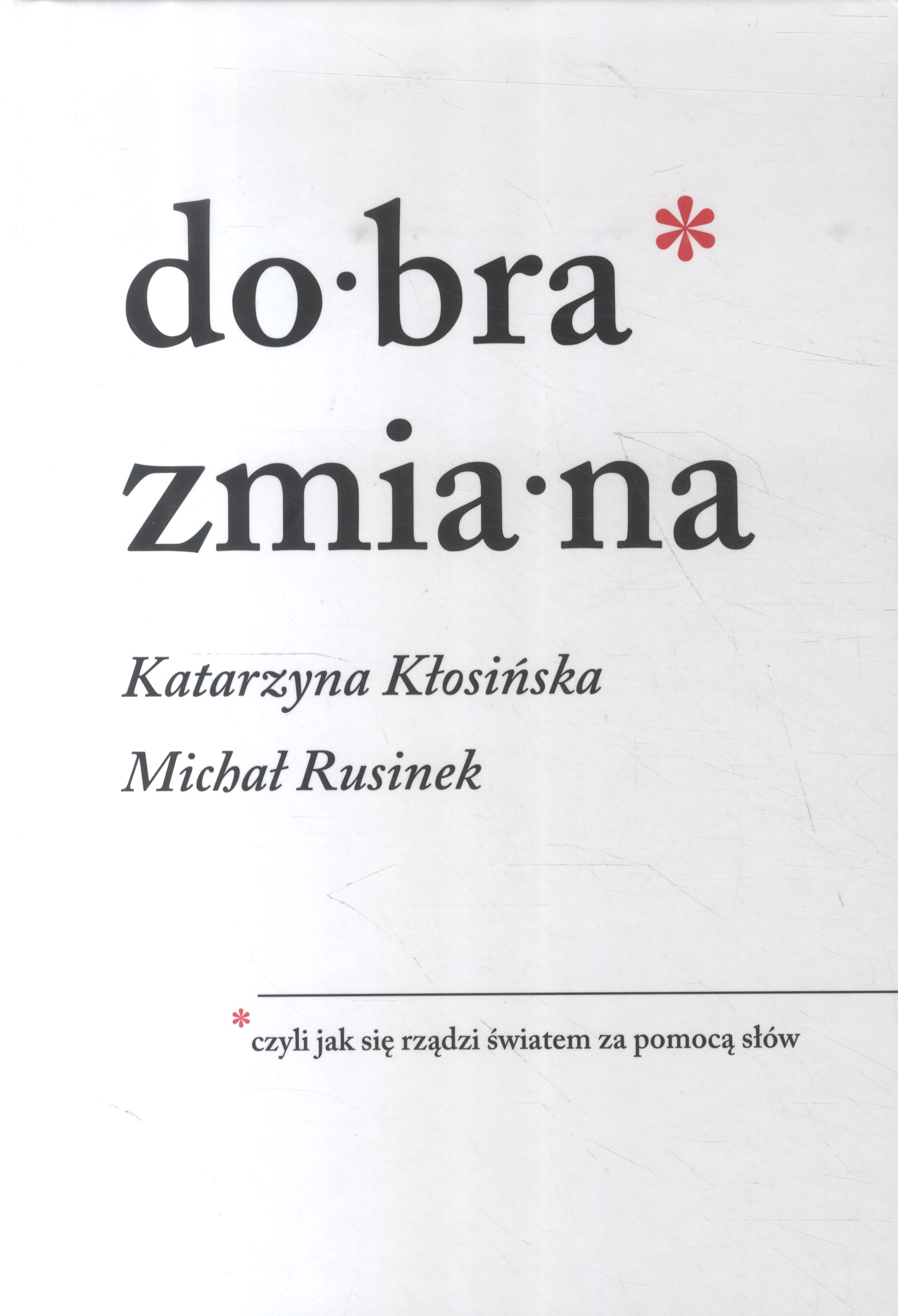 „Dobra zmiana” to wynik wnikliwych obserwacji i badań prowadzonych przez Katarzynę Kłosińską i Michała Rusinka w latach 2015-2019 układający się w słownik języka władzy tego okresu. Język rządzących nie tylko przenika do naszej mowy codziennej, ale również kreuje naszą rzeczywistość. Może być źródłem żartu, ale też źródłem przemocy. Autorzy z językoznawczą dociekliwością odkrywają, co kryje się za najpopularniejszymi z używanych przez władzę słów i jak wpływają one na naszą codzienność i postrzeganie świata.