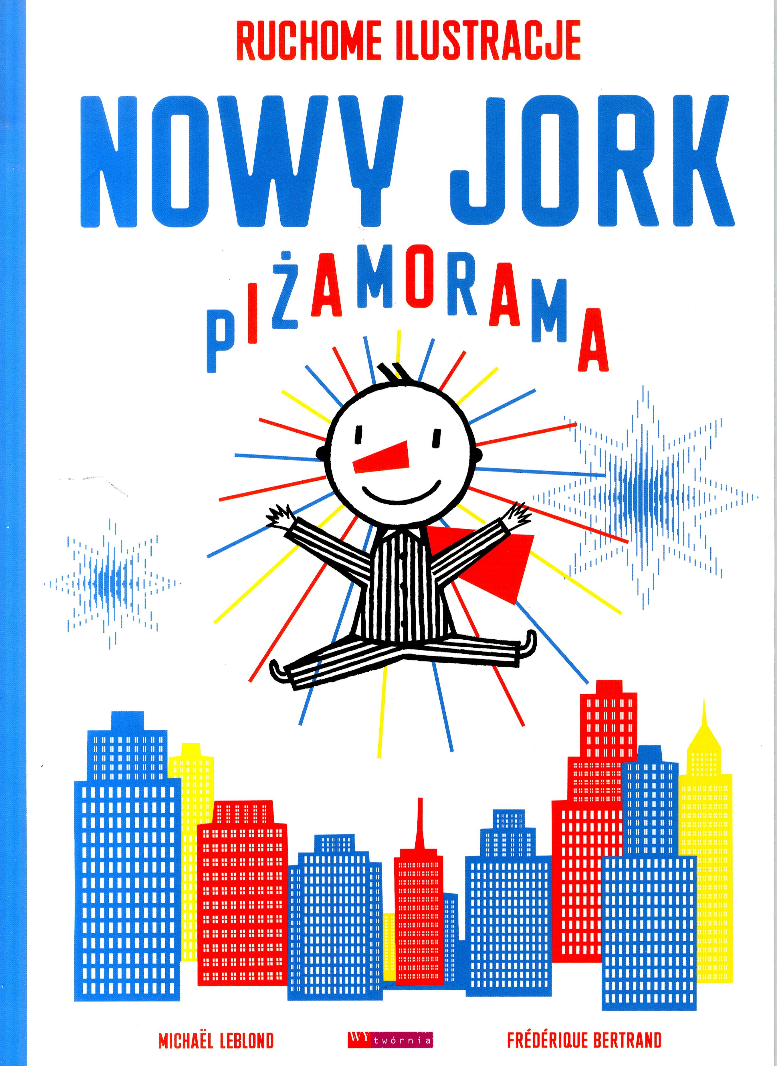 „Nowy Jork Piżamorama” to niezwykła podróż chłopca w piżamie w paski. Dziecko zapada w sen, a książka ożywa, by przenieść je do pełnego zgiełku, świateł i ruchu Nowego Jorku - miasta, które nigdy nie zasypia. W tej książce przypominamy bardzo starą technikę animacji "ombro cinema", opartej na iluzji optycznej. Dołączona paskowana folia pozwala ożywić ilustracje. Aby stworzyć iluzję ruchu, wystarczy przyłożyć folię do prążkowanego obrazka i bardzo powoli przesuwać ją od jednej krawędzi strony do drugiej. Zobaczymy wówczas migoczące światła ulicznego zgiełku, pędzące autostradą samochody, wirujące liście drzew w Central Parku, ruchliwe ulice Manhattanu i tłumy ludzi na Broadwayu – to jest właśnie piżamorama! [Nota wydawcy]