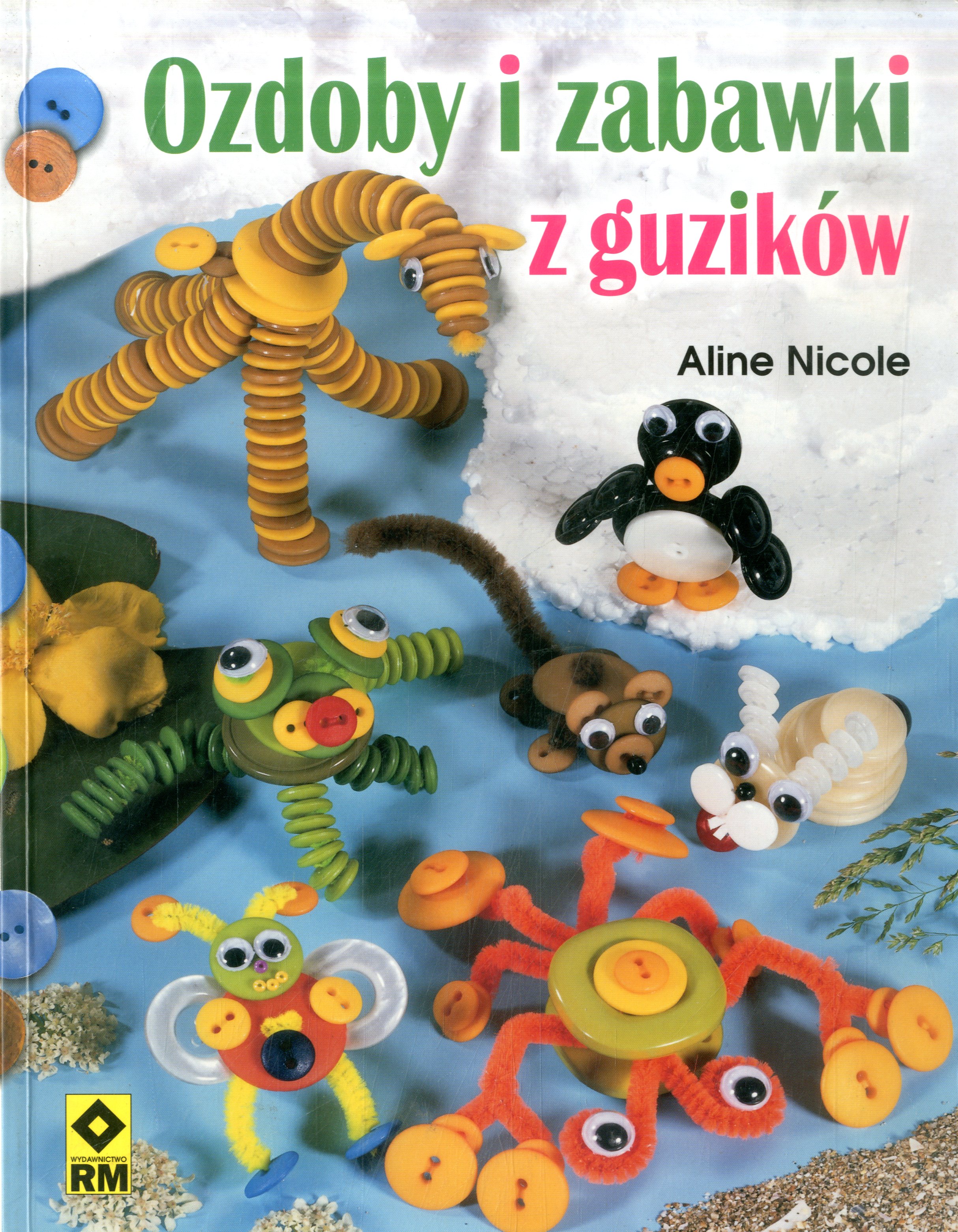 Z kolorowych guzików rożnych kształtów i wielkości kleju i drutu można zrobić królika, baranka, biedronkę i inne zabawki.