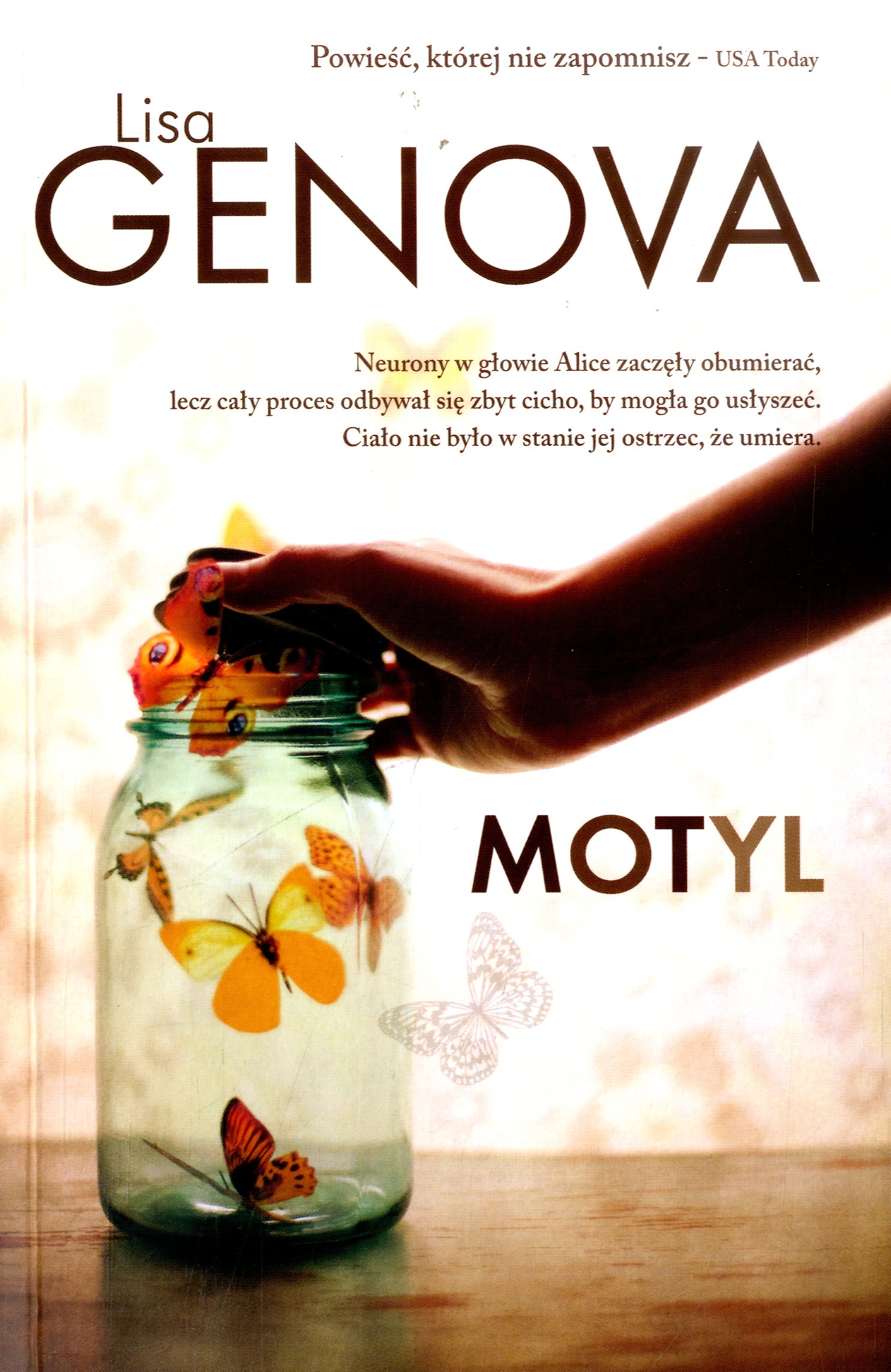 „Motyl” to jedna z najpiękniejszych powieści ostatnich lat. Alice Howland zaczyna tracić pamięć. Lekarze kładą to na karb zmęczenia i stresu. Ale mylą się. Alice jest profesorem Harvardu, uprawia Jogging i korzysta z życia, jest spełnioną kobietą. Diagnoza, Alzheimer o wczesnym początku, jest dla niej wyrokiem. Kobieta musi pogodzić się z tym, że niebawem straci swoją tożsamość. Zapomni kim jest, co kocha, a czego nienawidzi. Przestanie poznawać swoje dzieci. Próbuje się przed tym bronić tworząc w swoim komputerze, niczym dodatkowy dysk pamięci, specjalny folder o nazwie: Motyl…