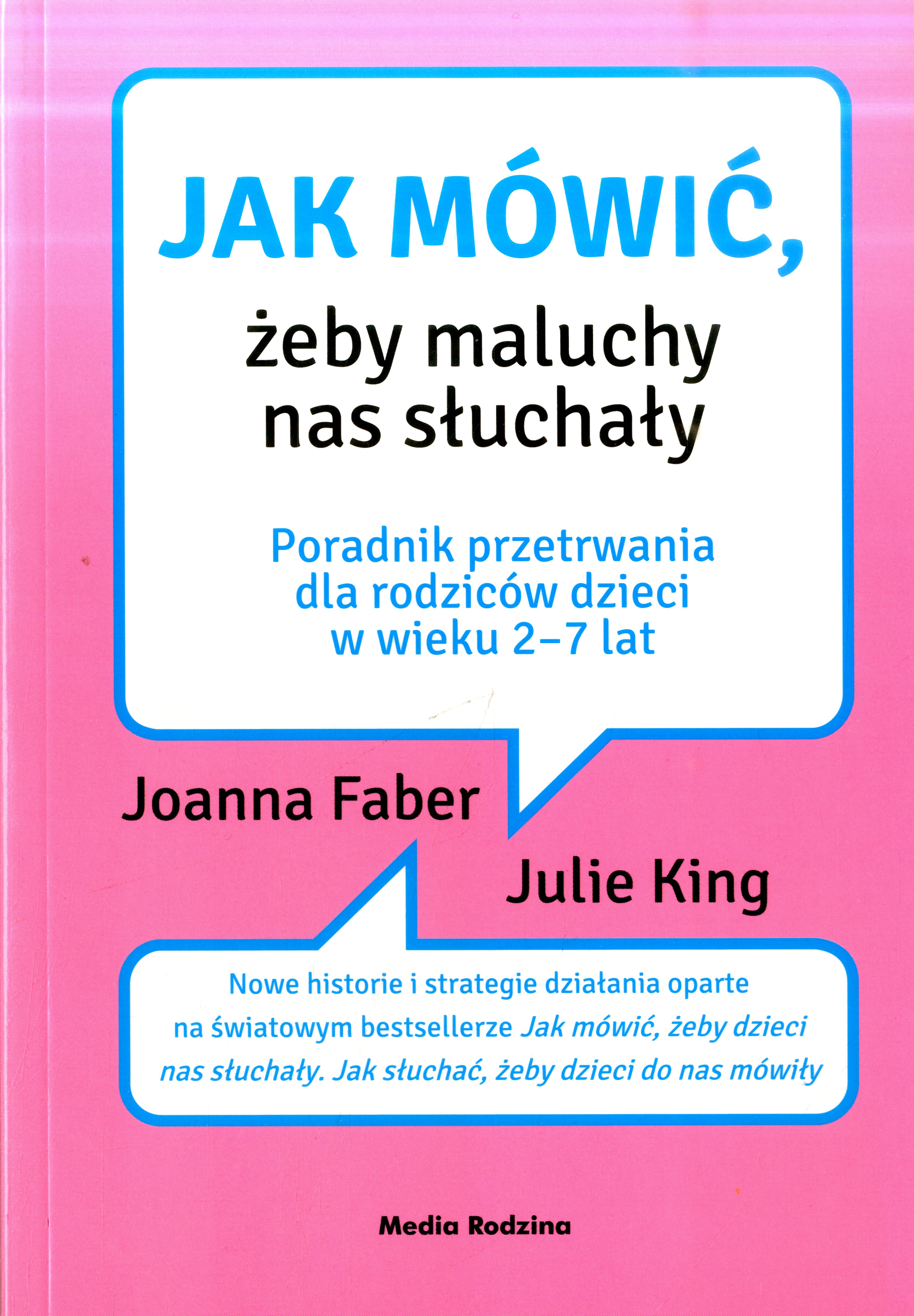 Podręcznik niezbędny dla każdego, kto w domu czy w pracy ma do czynienia z małymi dziećmi, poprzedzony przedmową Adele Faber, jedną z autorek bestsellerowego Jak mówić, żeby dzieci nas słuchały. Jak słuchać, żeby dzieci do nas mówiły, nazwanego przez „The Boston Globe” „biblią wychowania”. Jak poradzić sobie z maluchem, który nie chce myć zębów, odmawia jedzenia warzyw lub rozrzuca książki po całym pokoju? Jak mówić, żeby maluchy nas słuchały to kompendium wiedzy dotyczącej wychowania dzieci w wieku 2-7 lat. Autorki, Joanna Faber (córka Adele) i Julie King dzielą się swoim wieloletnim doświadczeniem w pracy z dziećmi, a także wyciągają wnioski z wielu rozmów z rodzicami i specjalistami i za pomocą autentycznych historii oraz komiksów znanych z poprzednich tytułów w serii dostarczają szeregu praktycznych narzędzi i wskazówek, jak się komunikować, rozmawiać i rozwiązywać trudne sytuacje, nie ignorując przy tym potrzeb dziecka ani swoich. [mediarodzina.pl]