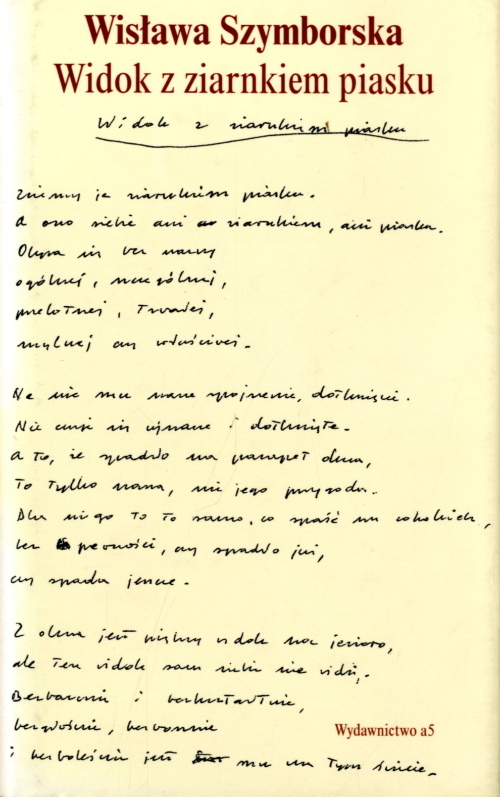 Tomik zawiera 102 wiersze; tomik wydany wkrótce po otrzymaniu przez poetkę literackiej nagrody Nobla. [lubimyczytac.pl]