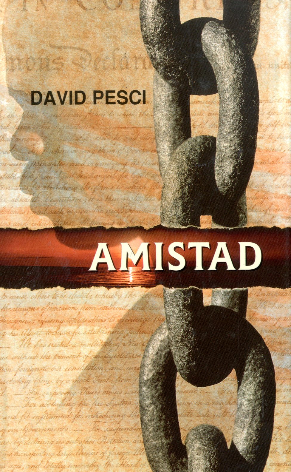 "Amistad" to oparta na autentycznych wydarzeniach powieść historyczna, opowiadająca o jednym z najważniejszych epizodów walki toczonej w XIX w. w Stanach Zjednoczonych przez zwolenników zniesienia niewolnictwa. W 1839 r. obowiązuje już wprawdzie zakaz handlu Murzynami przywożonymi z Afryki, nie dotyczy on jednak dawnych niewolników oraz tych, którzy urodzili się w niewoli. Wykorzystują to handlarze żywym towarem, nielegalnie przewożący Afrykanów na Kubę, a stamtąd do Ameryki. Na jednym z takich przemytniczych statków hiszpańskich dochodzi do krwawego buntu więzionych, a opanowany szkuner "Amistad" zostaje zatrzymany przez amerykańską marynarkę.