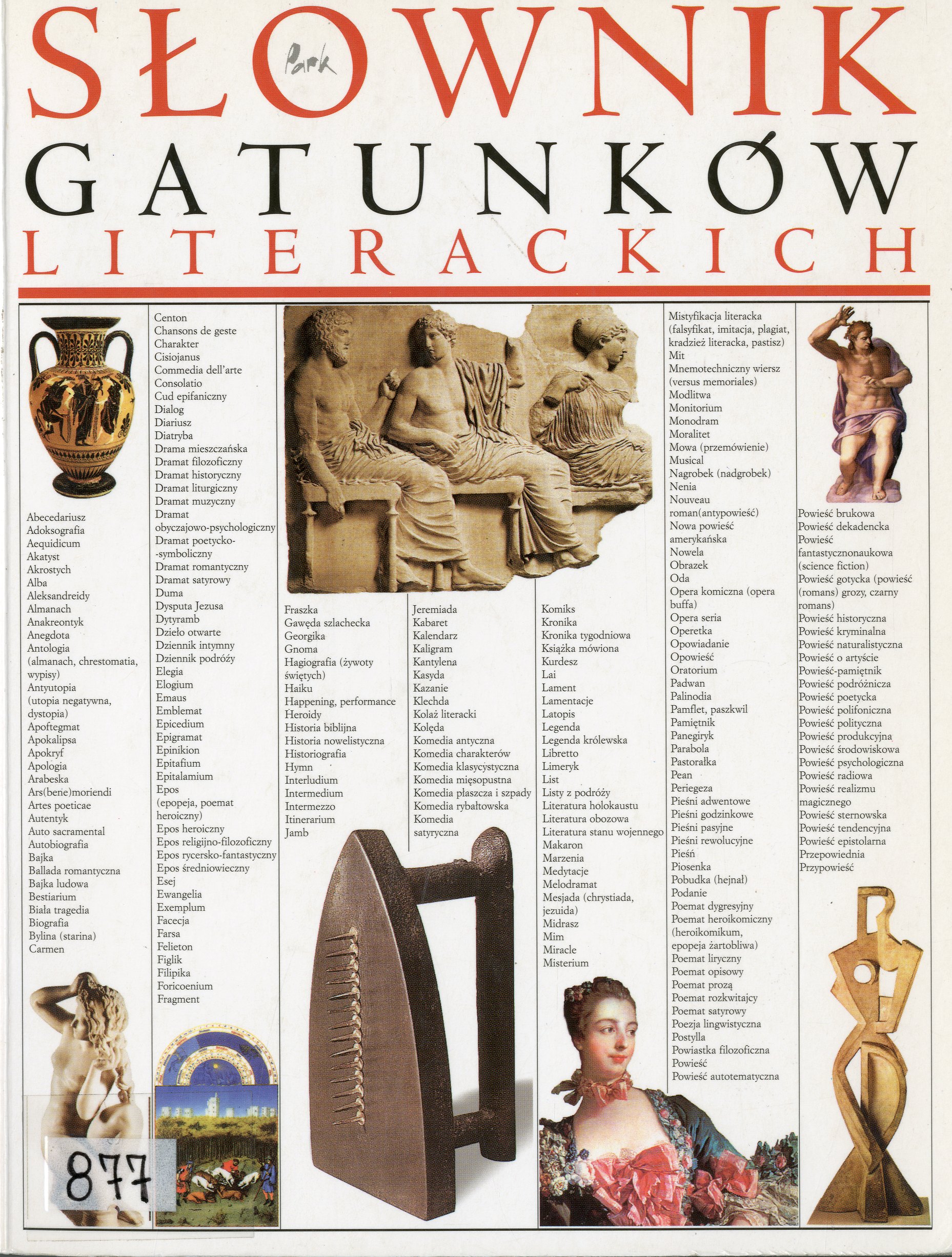 Słownik gatunków literackich / Marek Bernacki, Marta Pawlus ; wstęp Stanisław Jaworski. - Wyd. 3. - Bielsko-Biała : "Park", cop. 2004. - 628 s. : il. kolor. ; 22 cm.