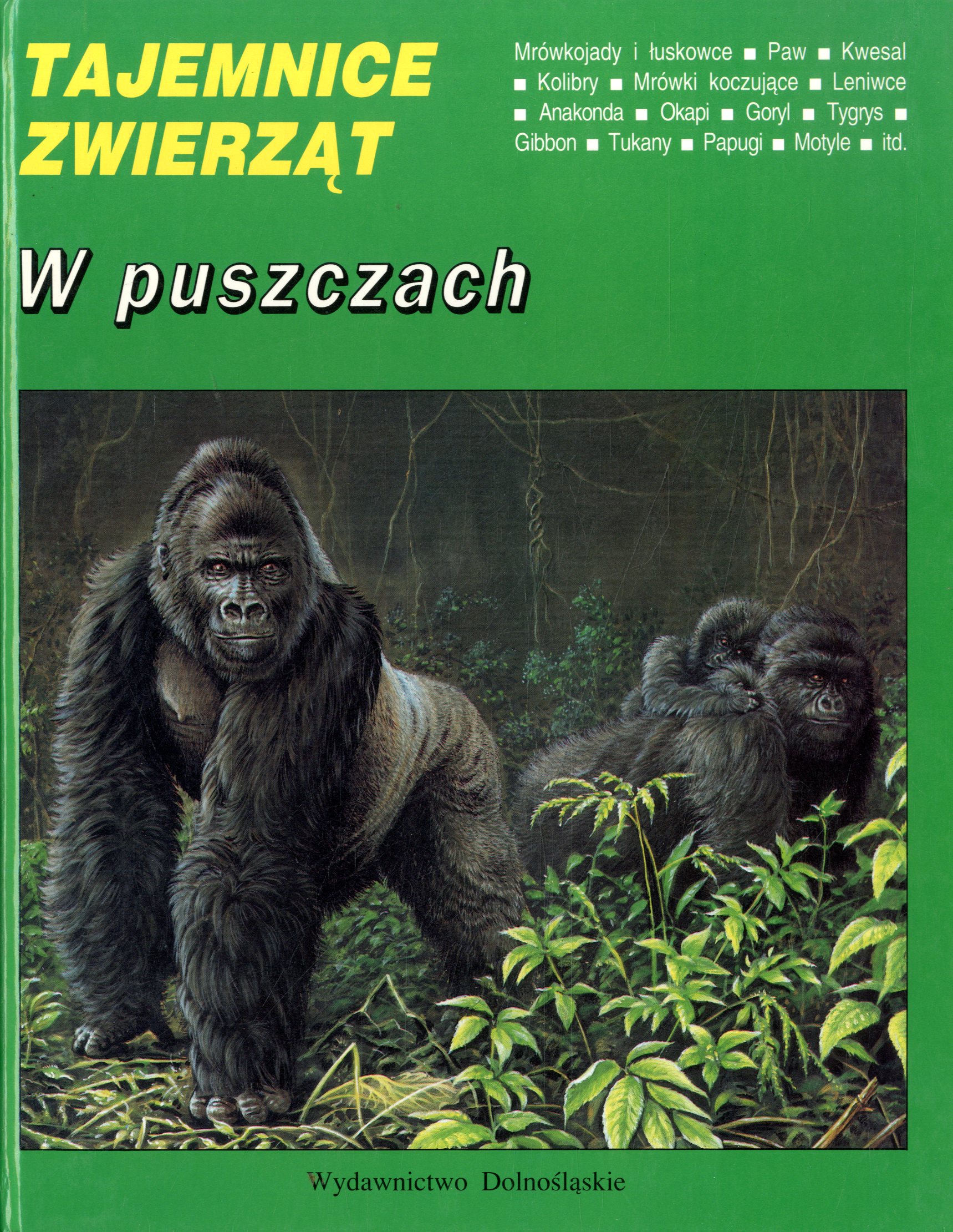 U góry okł.: mrówkojady i łuskowce, paw, kwesal, kolibry, mrówki koczujące, leniwce, anakonda, okapi, goryl, tygrys, gibbon, tukany, papugi, motyle, motyle itd.