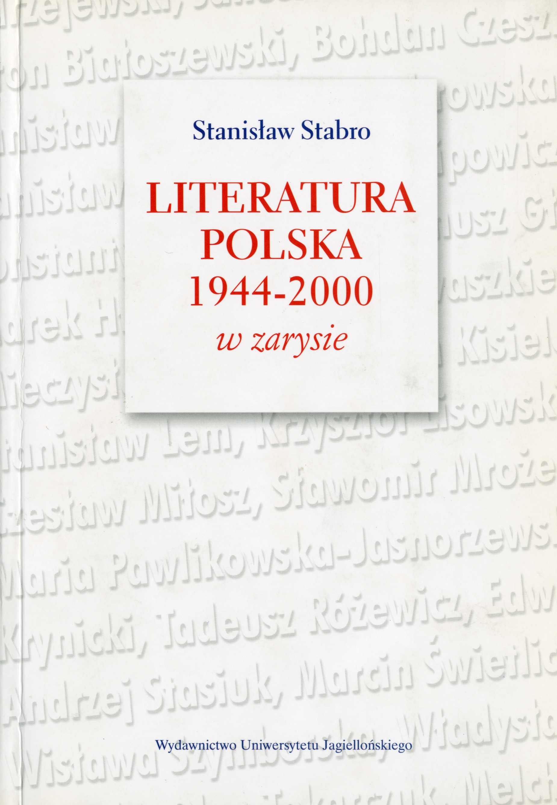 Literatura polska 1944-2000 w zarysie / Stanisław Stabro. - Wyd. 2 przejrz. i popr. - Kraków : Wydaw. Uniwersytetu Jagiellońskiego, cop. 2005. - 203 s. ; 24 cm.