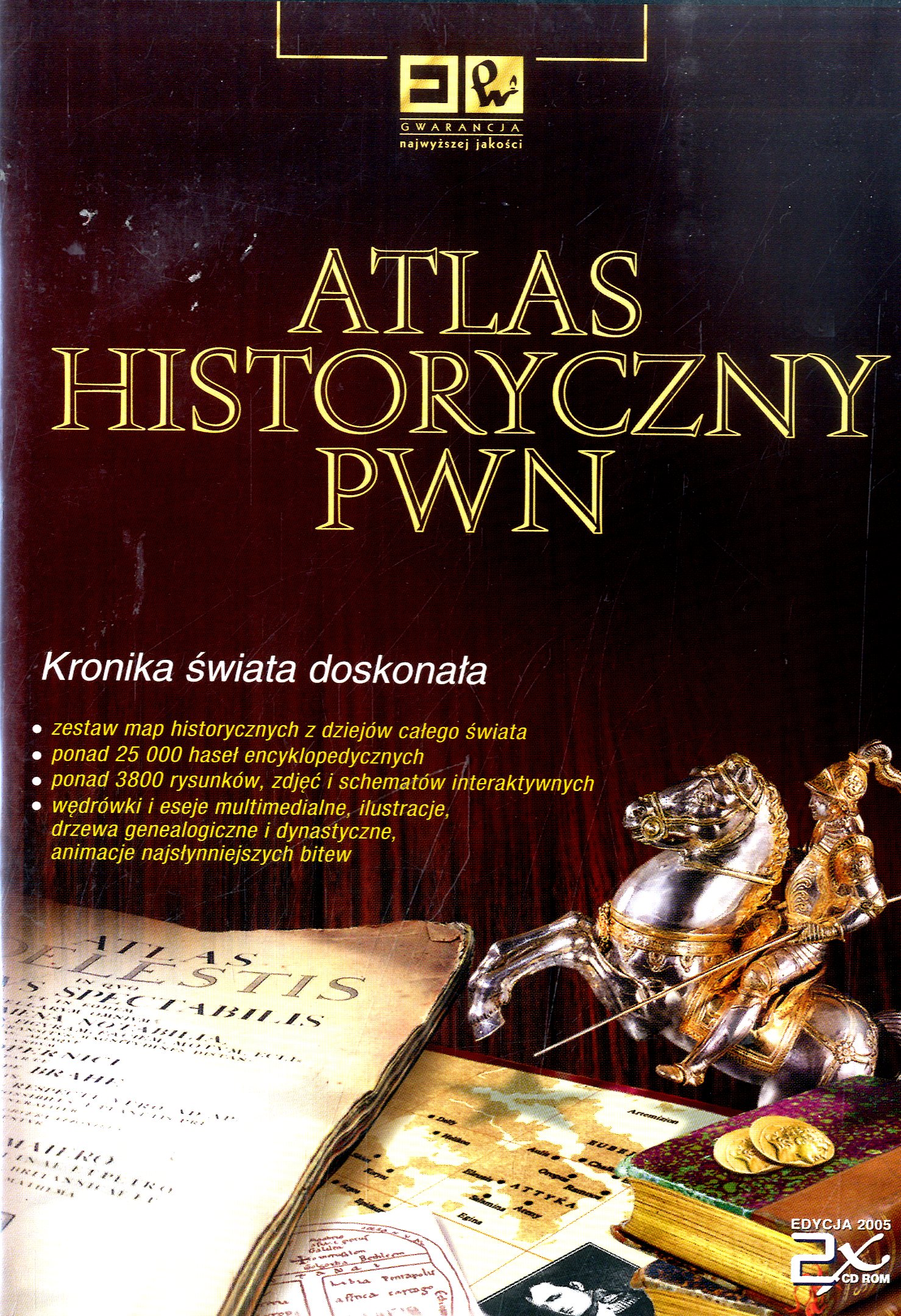 Atlas historyczny PWN - Multimedia interakcyjne. - Warszawa : Wydaw. Nauk. PWN, 2005. - 2 dyski optyczne (CD-ROM) : dźw., kolor. ; 12 cm.