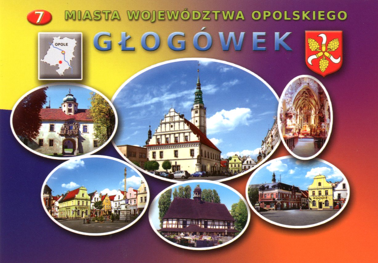 Ratusz - siedziba Urzędu Miejskiego ; Budynek bramny zamku ; Wnętrze kościoła pw. św. Bartłomieja Ap. ; Fragment rynku z narożną apteką ; Kościół pw. Krzyża Św. ; Fragment rynku z kolumna maryjną.