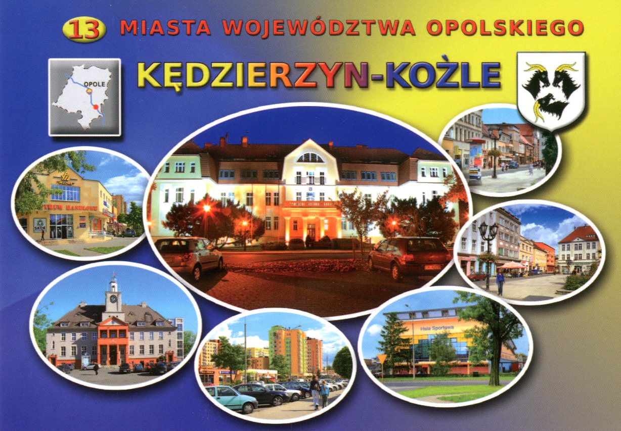 Budynek Urzędu Miasta ; Centrum handlowe ; Fragmenty rynku w Koźlu ; Hala sportowa w Kędzierzynie ; Ulica Wojska Polskiego ; Gmach Starostwa Powiatowego.