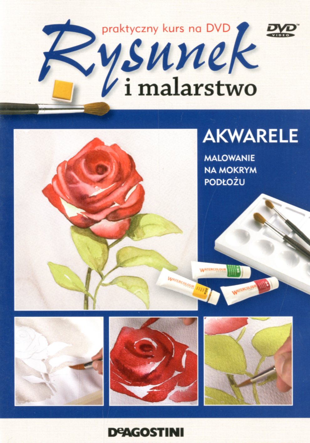 Akwarele 3, Malowanie na mokrym podłożu - Warszawa : "DeAgostini", cop. 2010. - 1 dysk optyczny (DVD) (25 min) : dźw., kolor. ; 12 cm + 12 s. : il kolor. ; 28 cm.