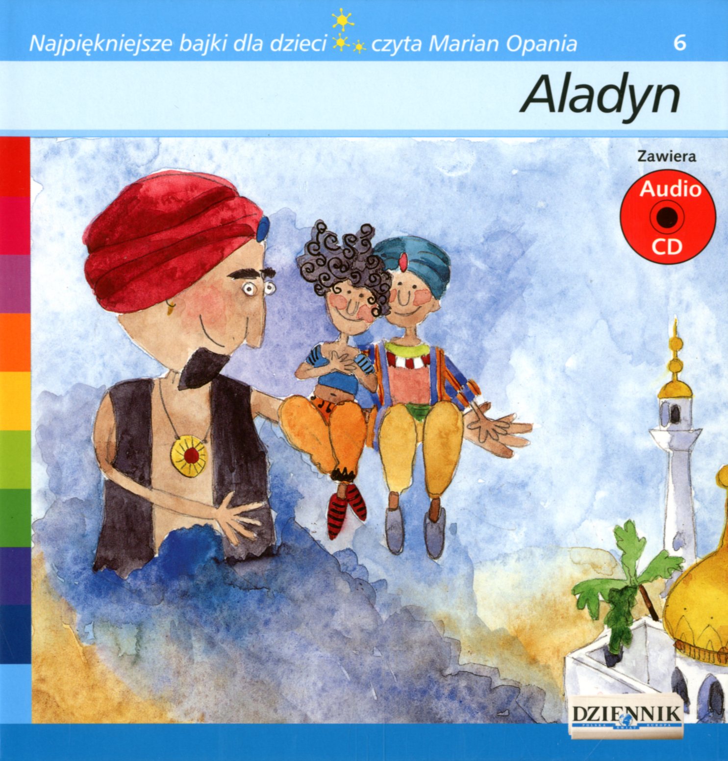 Aladyn : na motywach Baśni z 1001 nocy / il. Alejandra Viacara ; tekst pol. Barbara Jaroszuk. - Warszawa : Axel Springer Polska, cop. 2008. - 43, [2] s. : il. kolor. ; 20 cm + 1 płyta (CD) : digital ; 12 cm.