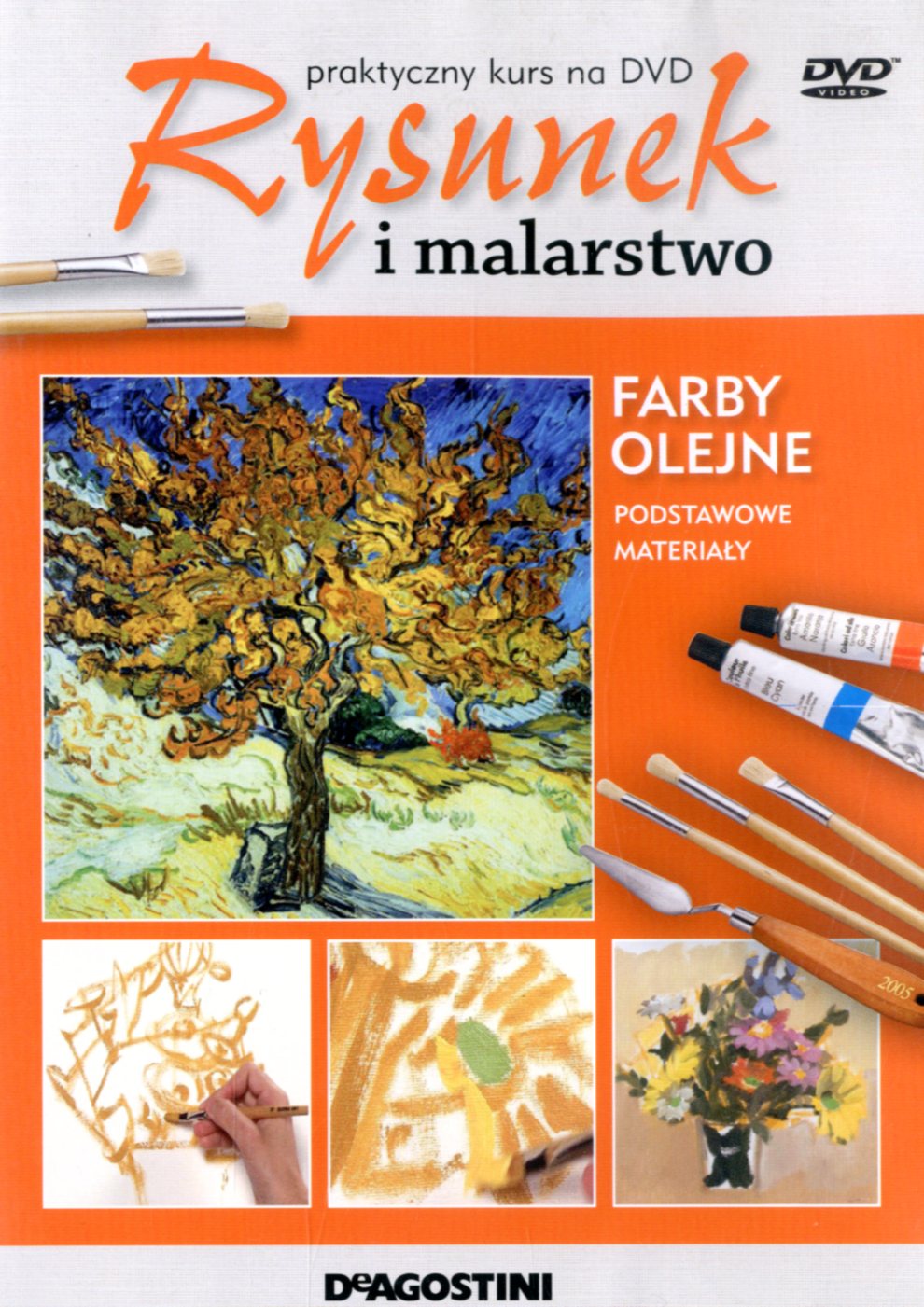 Farby olejne 1, Podstawowe materiały - Warszawa : "De Agostini", cop. 2010. - 1 dysk optyczny (DVD) (25 min) : dźw., kolor. ; 12 cm + 12 s. : il kolor. ; 28 cm.
