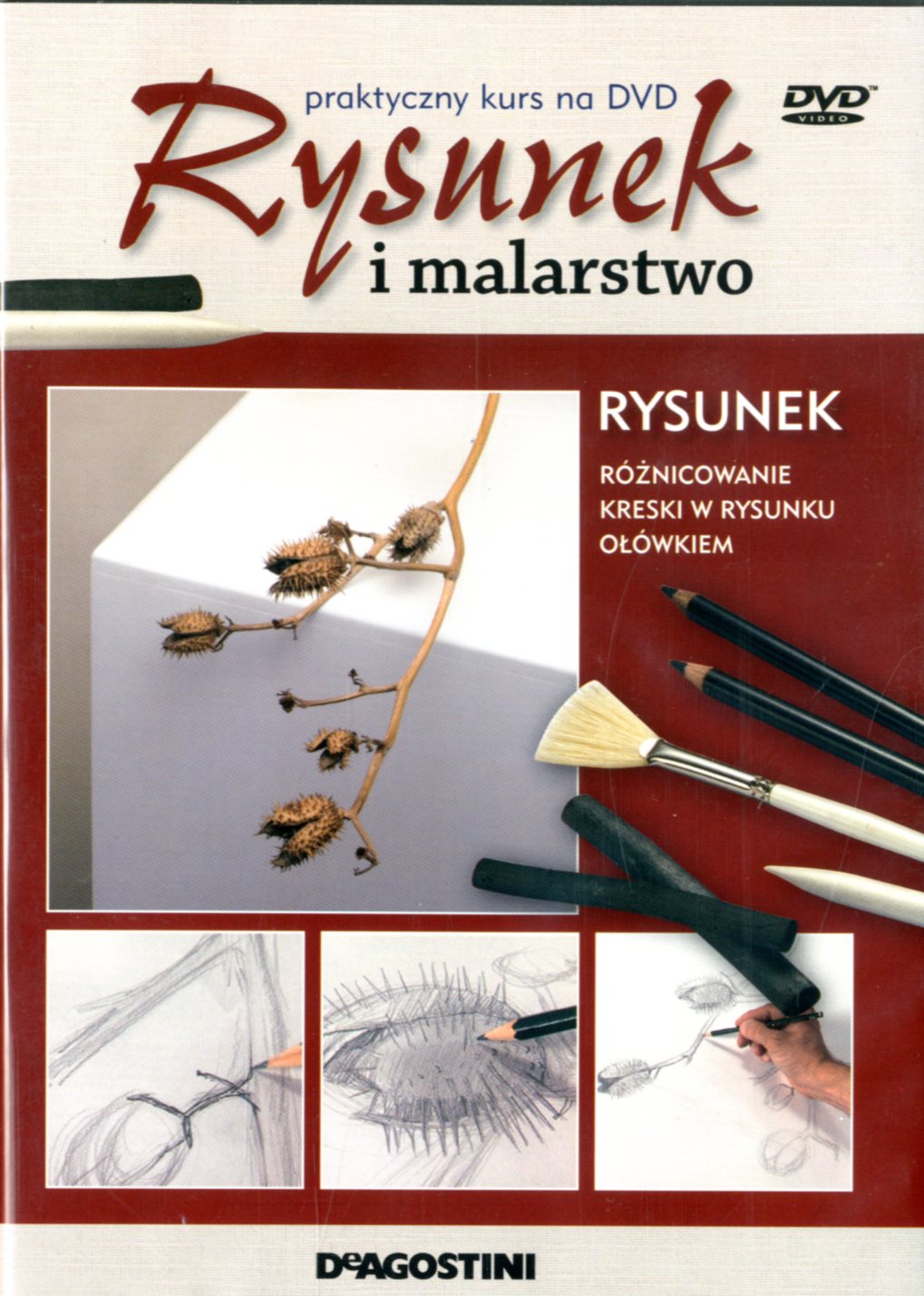 Rysunek 5, Różnicowanie kreski w rysunku ołówkiem - Warszawa : "DeAgostini", cop. 2010. - 1 dysk optyczny (DVD) (25 min) : dźw., kolor. ; 12 cm + 12 s. : il kolor. ; 28 cm.