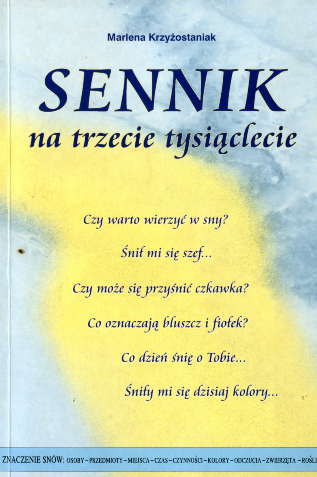 Sennik na trzecie tysiąclecie / Marlena Krzyżostaniak. - Wyd. 2. - Wrocław : "Astrum", 2000. - 399, [5] s. ; 21 cm.