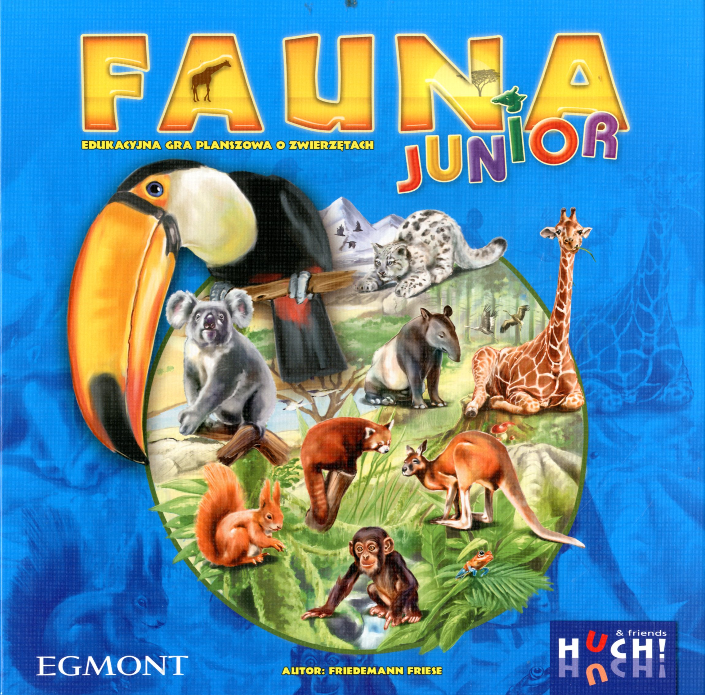 Pudełko zawiera : plansza do gry, 90 dwustronnych kart, 1 pudełko na karty, 6 płytek z siedliskami zwierząt, 16 żetonów, 4 wskaźniki punktów, instrukcja