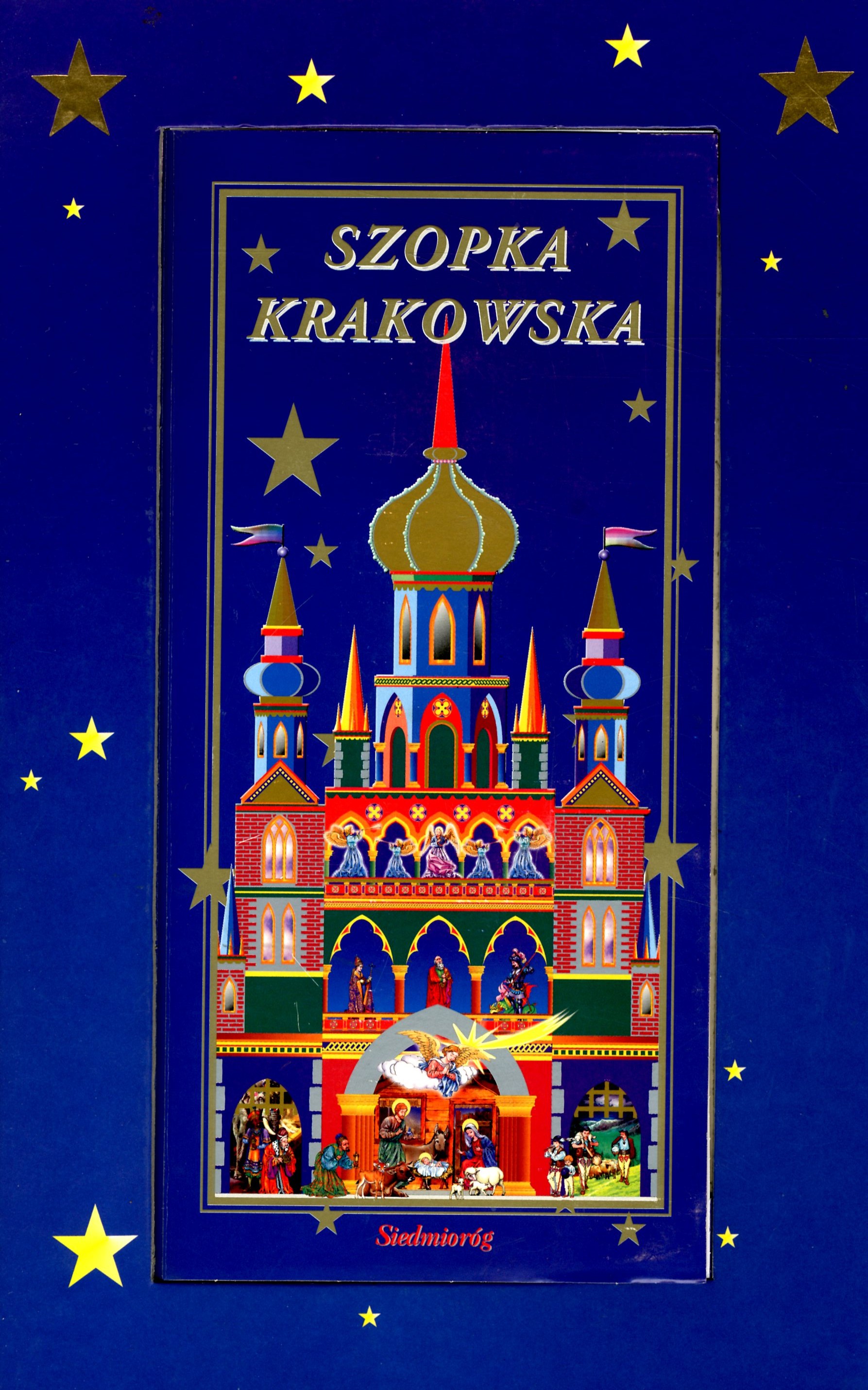 W środku: rozkładany, trójwymiarowy model "Szopki krakowskiej", wycinanka z kartonowymi figurkami do ustawiania, instrukcja montażu, książeczka z wierszowaną opowieścią Joanny Kulmowej o Bożym Narodzeniu.