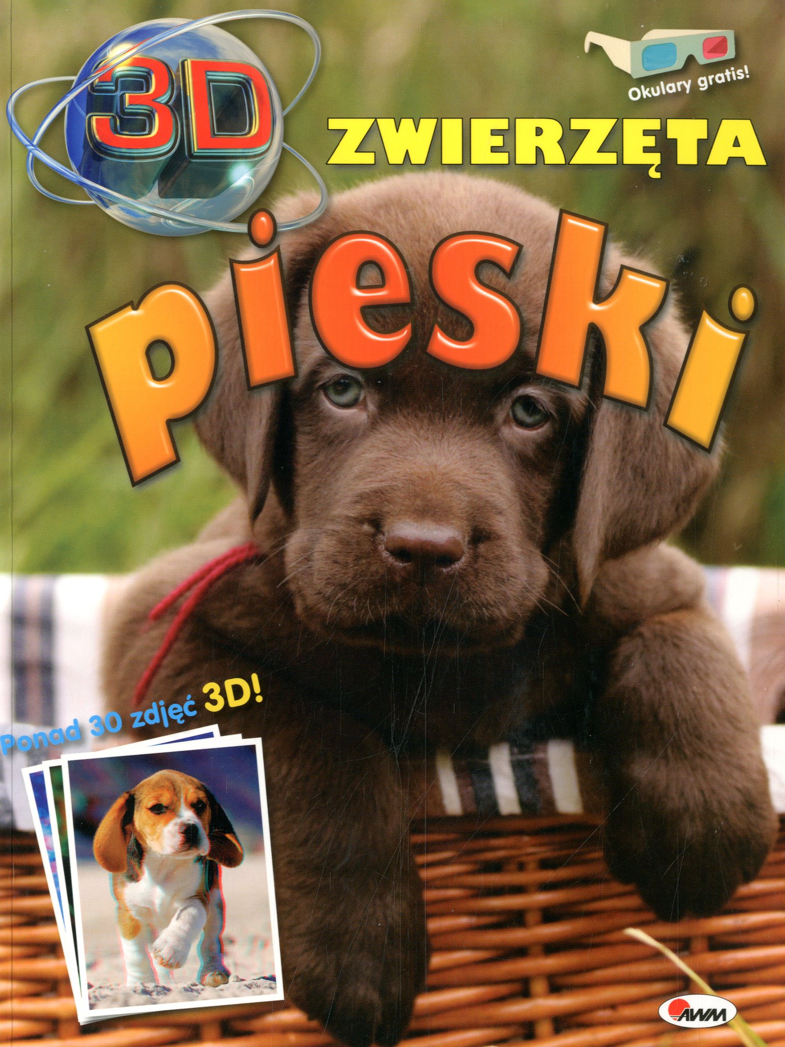 Pieski / [red. tekstu Monika Marczyk]. - Janki k. Warszawy : Agencja Wydaw. Jerzy Mostowski, cop. 2012. - [64] s. : il. kolor. ; 27 cm + okulary 3D.