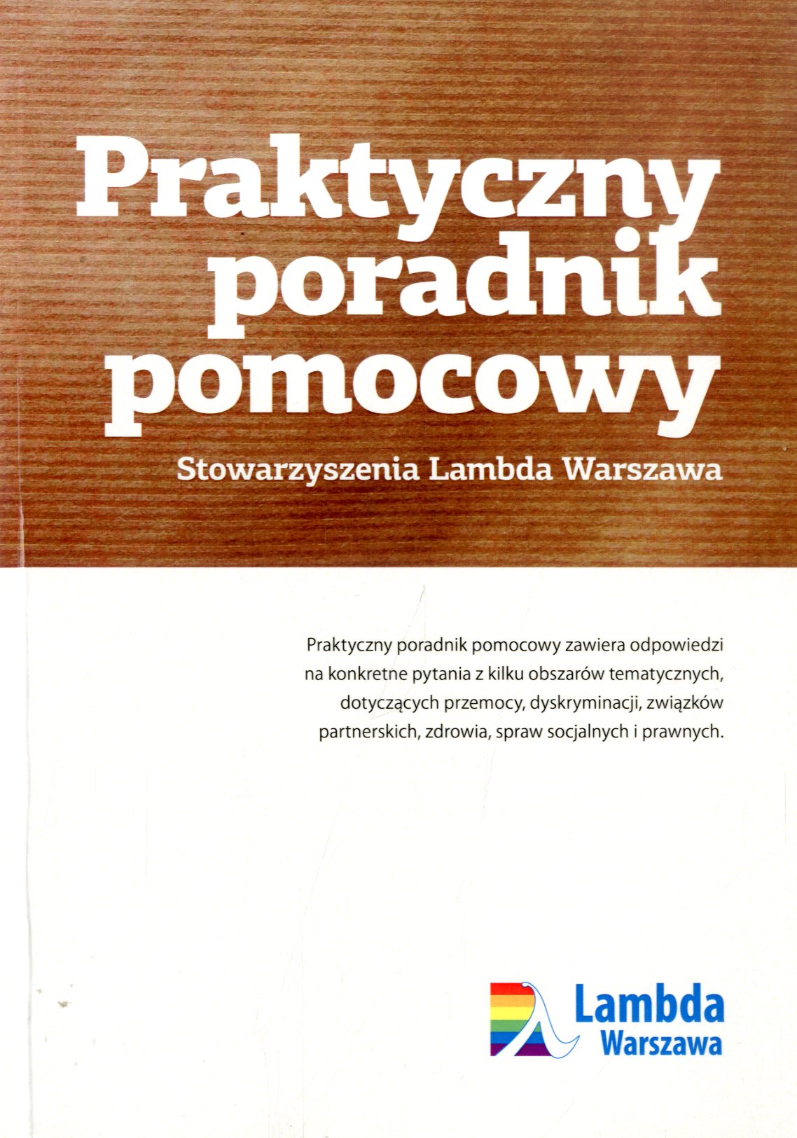Na s. tyt.: Praktyczny poradnik pomocowy zawiera odpowiedzi na konkretne pytania z kilku obszarów tematycznych, dotyczących przemocy, dyskryminacji, związków partnerskich, zdrowia, spraw socjalnych i prawnych.