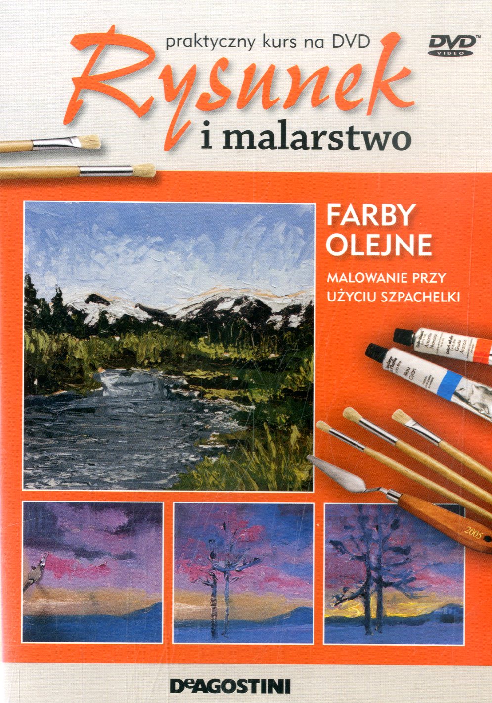 Farby olejne 15, Malowanie przy użyciu szpachelki - Warszawa : "DeAgostini", cop. 2013. - 1 dysk optyczny (DVD) (25 min) : dźw., kolor. ; 12 cm + 12 s. : il kolor. ; 28 cm.