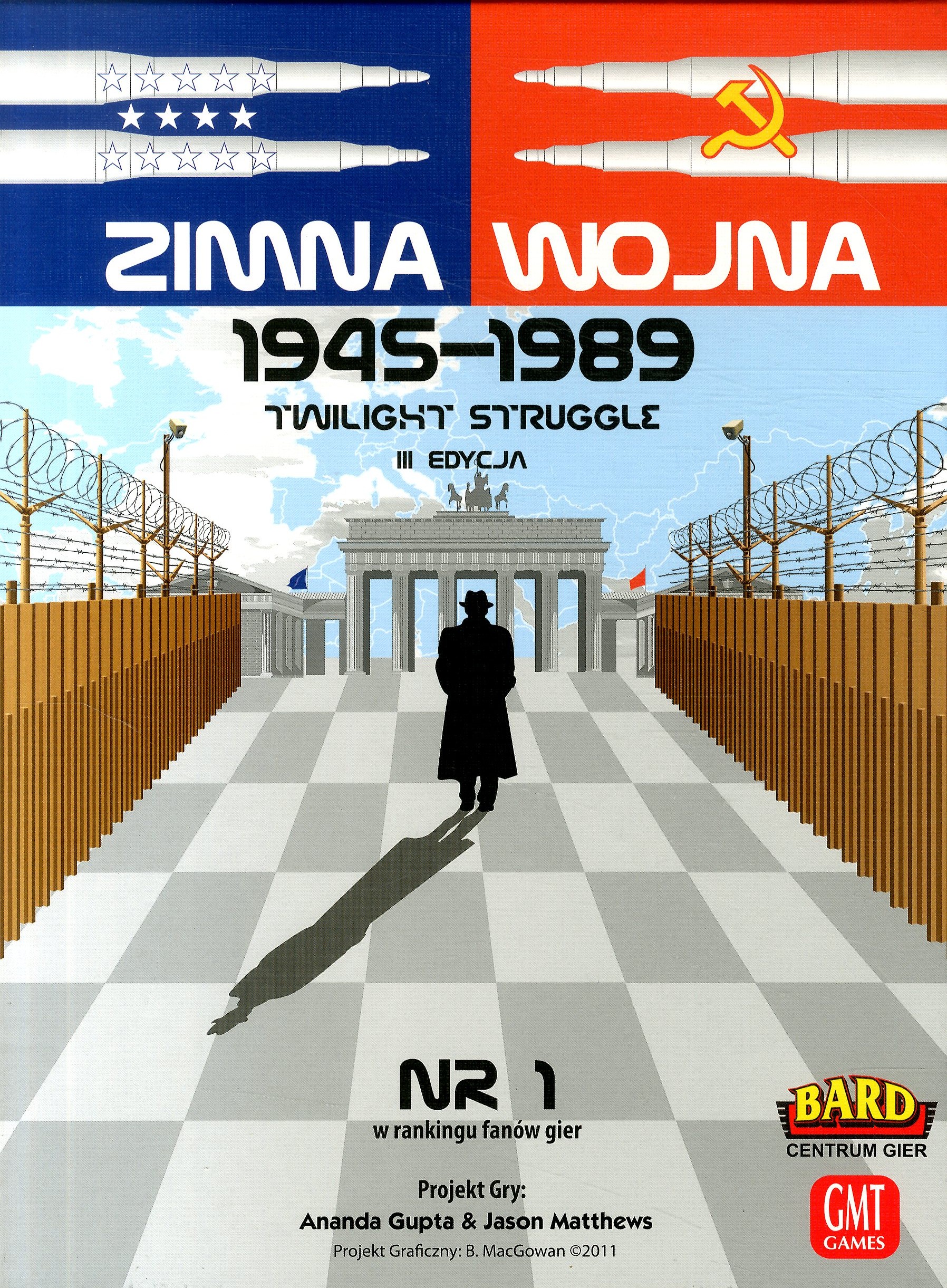 Zimna wojna 1945-1989 / projekt gry Ananda Gupta & Jason Matthews. - 3 edycja. - Kraków : Bard Centrum Gier, cop. 2013. - Pudełko : plansze, karty ; wym. pudełka 23,5x31,5x5,5 cm + instrukcja.