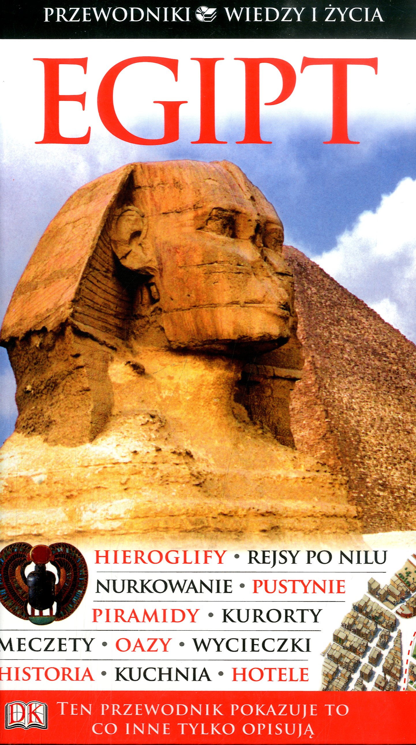 Na grzbiecie: Nowa edycja. U dołu okł.: Hieroglify, rejsy po Nilu, nurkowanie, pustynie, piramidy, kurorty, meczety, oazy, wycieczki, historia, kuchnia, hotele ; Ten przewodnik pokazuje to, co inne tylko opisują.