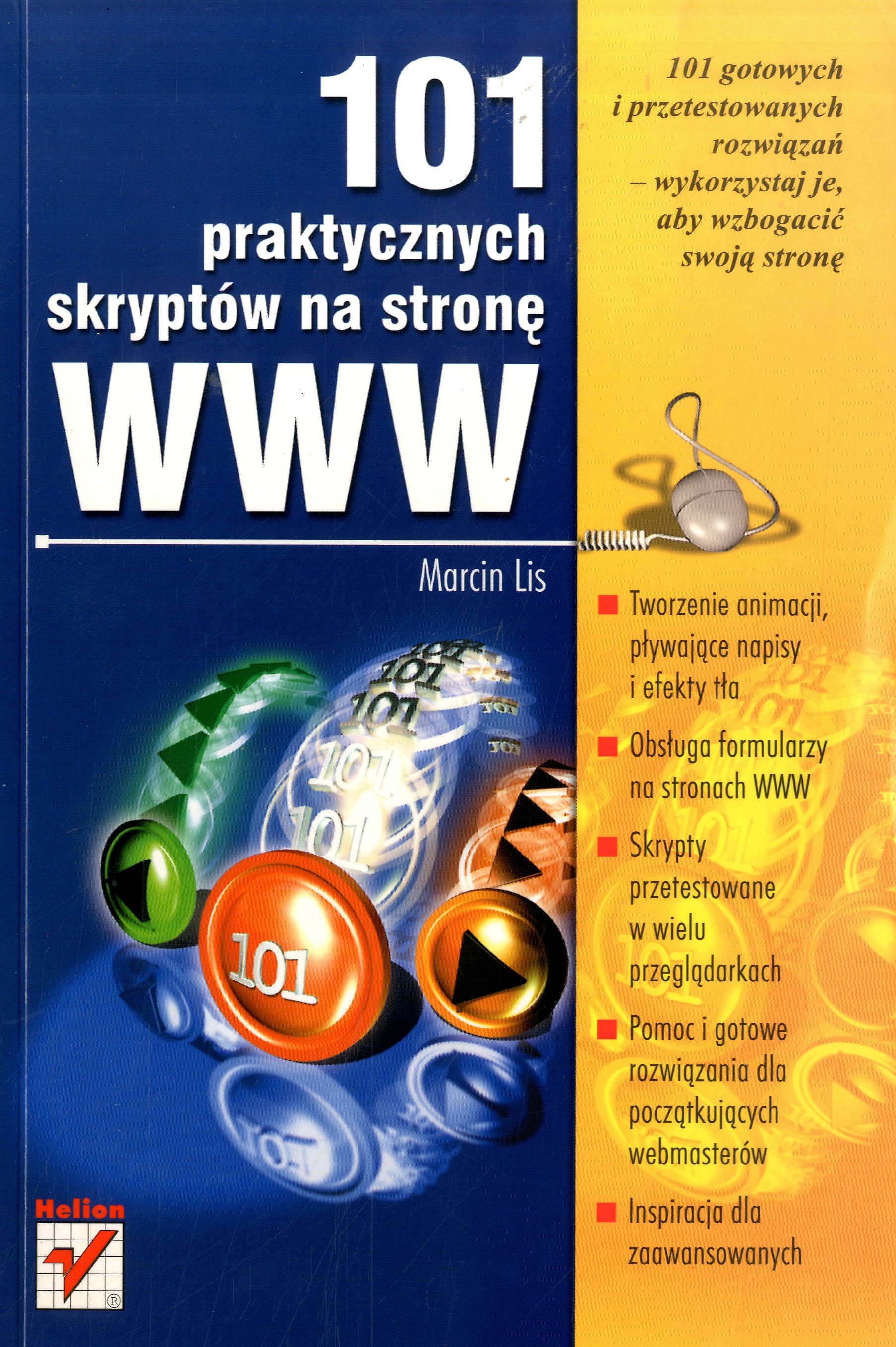 101 praktycznych skryptów na stronę WWW / Marcin Lis. - Gliwice : Wydawnictwo Helion, cop. 2002. - 195 s. : il. ; 24 cm + dyskietka.
