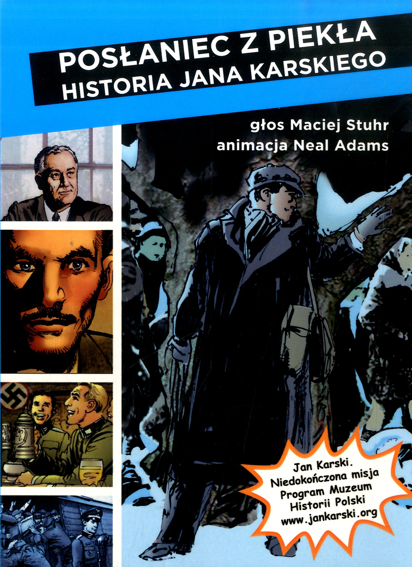 Pasjonującą historię bohatera Polskiego Państwa Podziemnego wziął na warsztat twórca kultowych amerykańskich komiksów X-men i Batman, rysownik Neal Adams. Głosu Janowi Karskiemu użyczył znakomity aktor Maciej Stuhr. Dzięki zastosowaniu nowatorskiej formy animowanego komiks, łączącej w sobie elementy kreskówki, kroniki filmowej i fotografii, "Posłaniec z piekła" porusza wyobraźnię, przedstawiając jednocześnie prawdziwą historię wojennych losów człowieka, który próbował zatrzymać Holokaust.