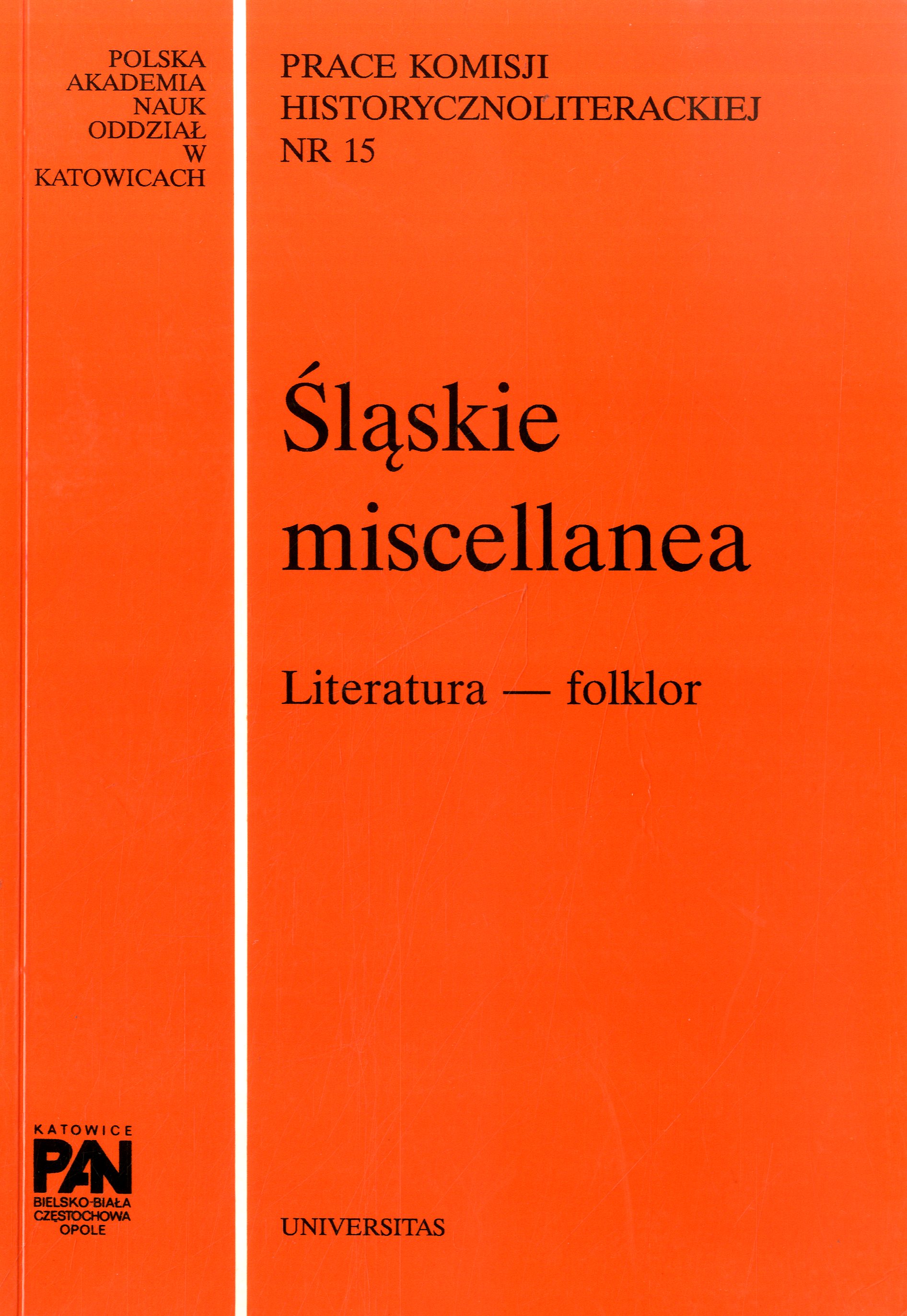 (Prace Komisji Historycznoliterackiej / Polska Akademia Nauk. Oddział w Katowicach, ISSN 0137-964X ; nr 15.)