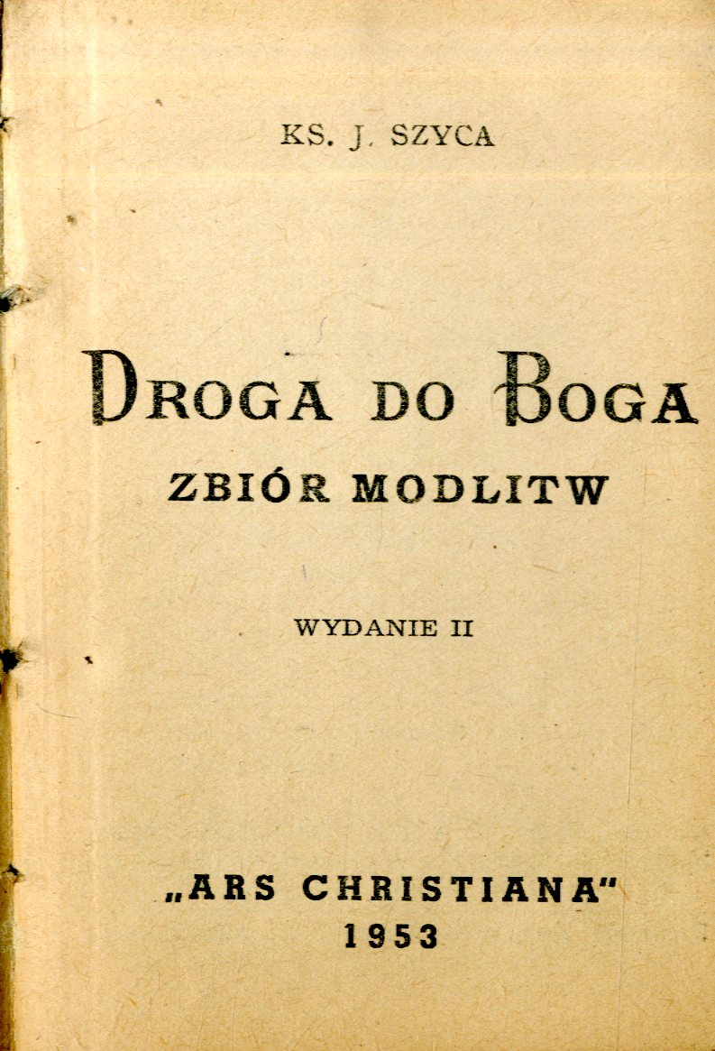 Droga do Boga : zbiór modlitw / J. Szyca. - Wyd. 2. - Warszawa : Ars Christiana, 1953. - 272 s. ; 11 cm.
