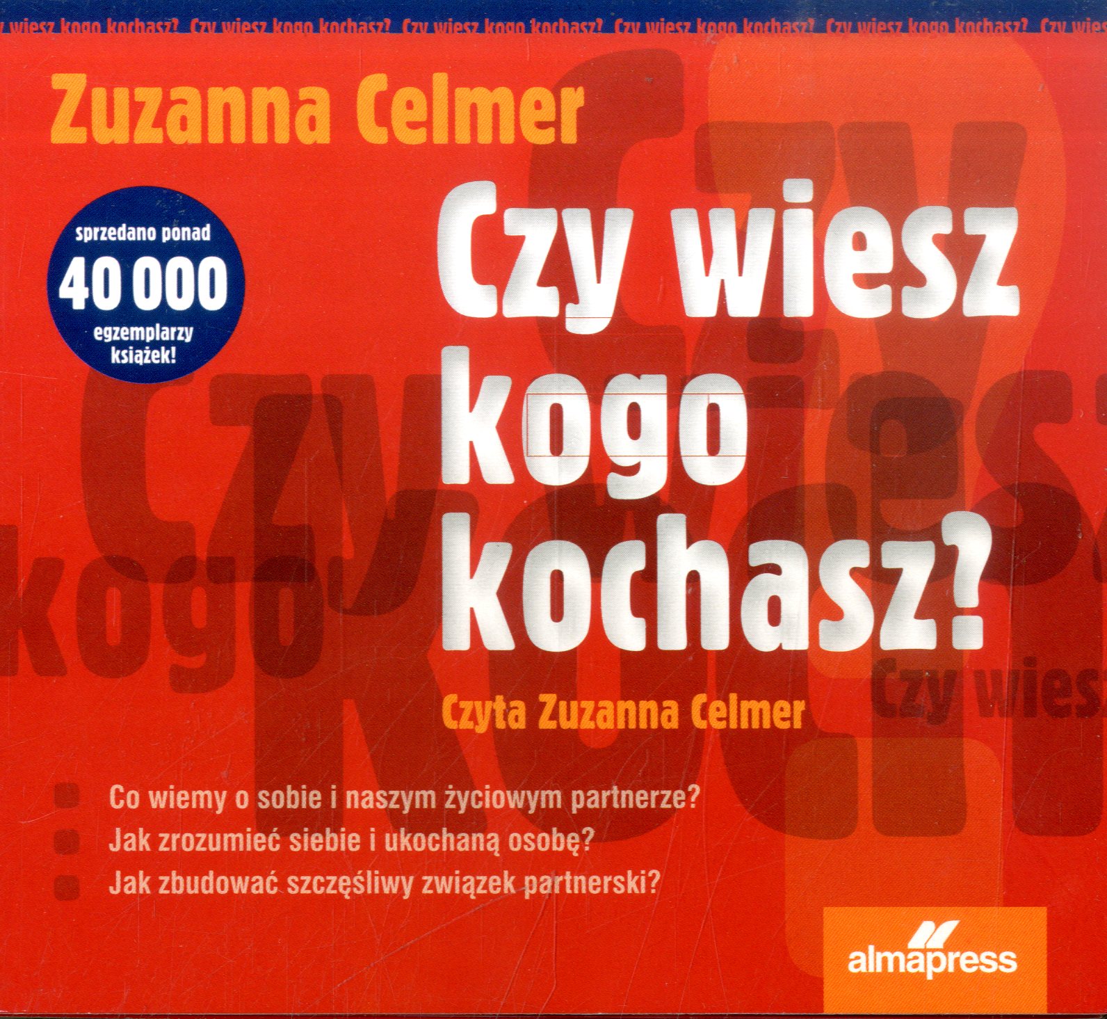Czy wiesz kogo kochasz? / Zuzanna Celmer. - Warszawa : "Alma-Press", [2012]. - 1 płyta (CD) (4 godz. 57 min) : digital, stereo. ; 12 cm.