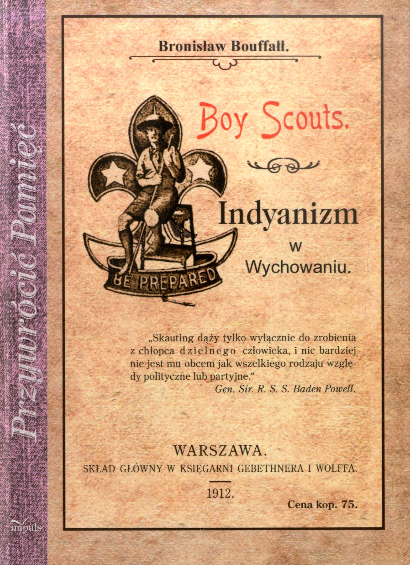 Boy scouts : Indyanizm w wychowaniu / Bronisław Bouffałł. - Kraków : "Impuls", 2014. - IV, 70, [10] s. : il. ; 16 cm.
