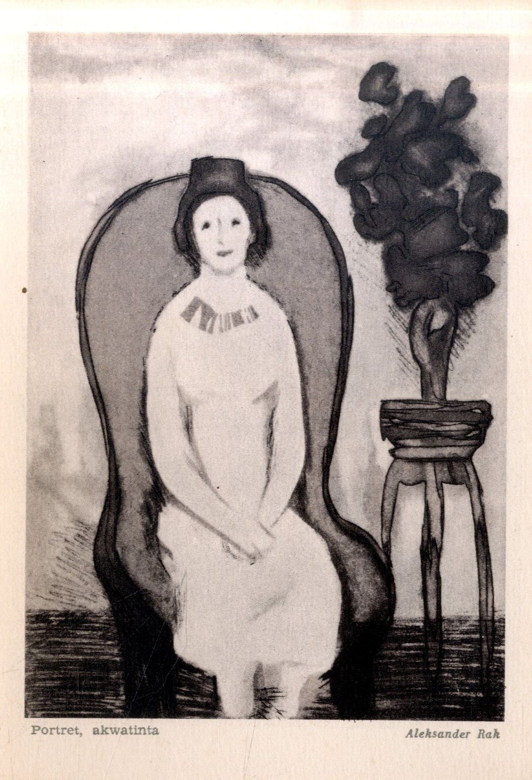 Przedmiot: Przedstawia kobietę siedzącą w fotelu.