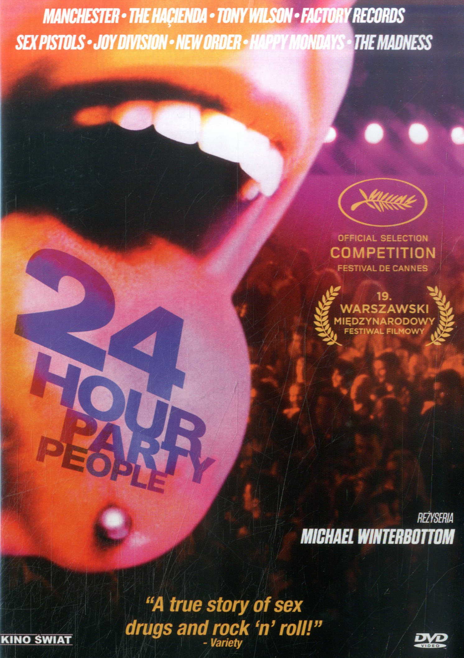 24 hour party people / reż. Michael Winterbottom ; scen. Frank Cottrell Boyce. - Wersja polska. - Warszawa : Kino Świat, [2015]. - 1 dysk optyczny (DVD) (102 min) : dźw., kolor. ; 12 cm.
