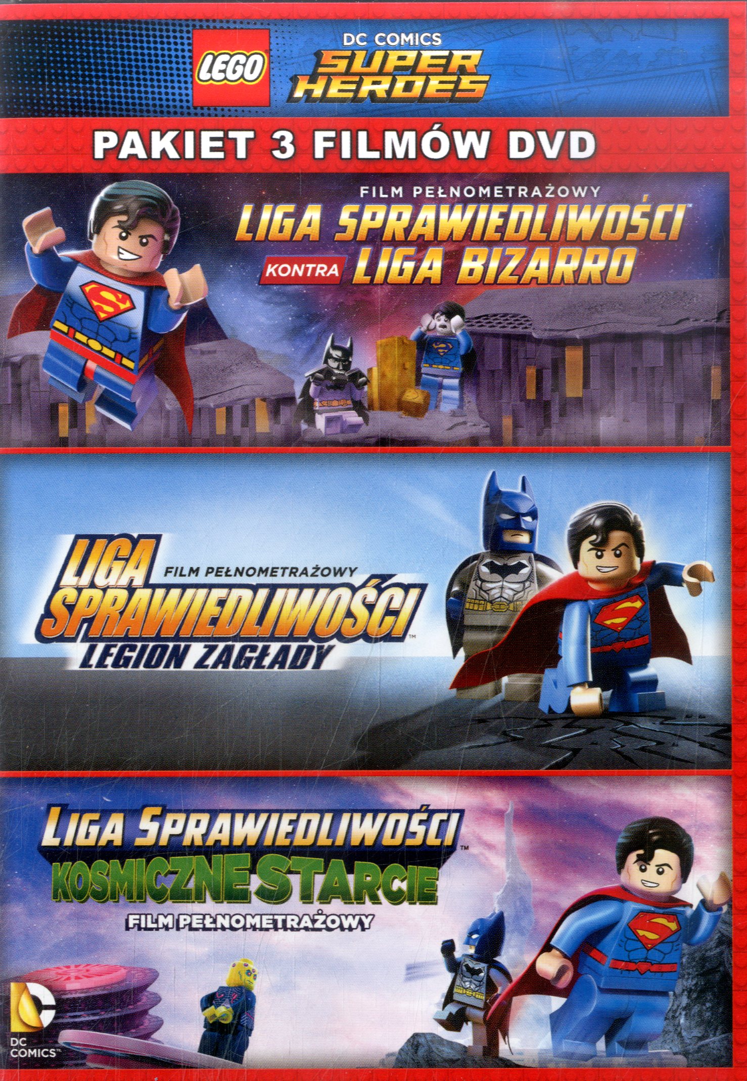 LEGO DC Comics Super Heroes [Film] : pakiet 3 filmów DVD. - Warszawa : Galapagos, [2016]. - 3 dyski optyczne (DVD) (190 min) : dźw., kolor. ; 12 cm.