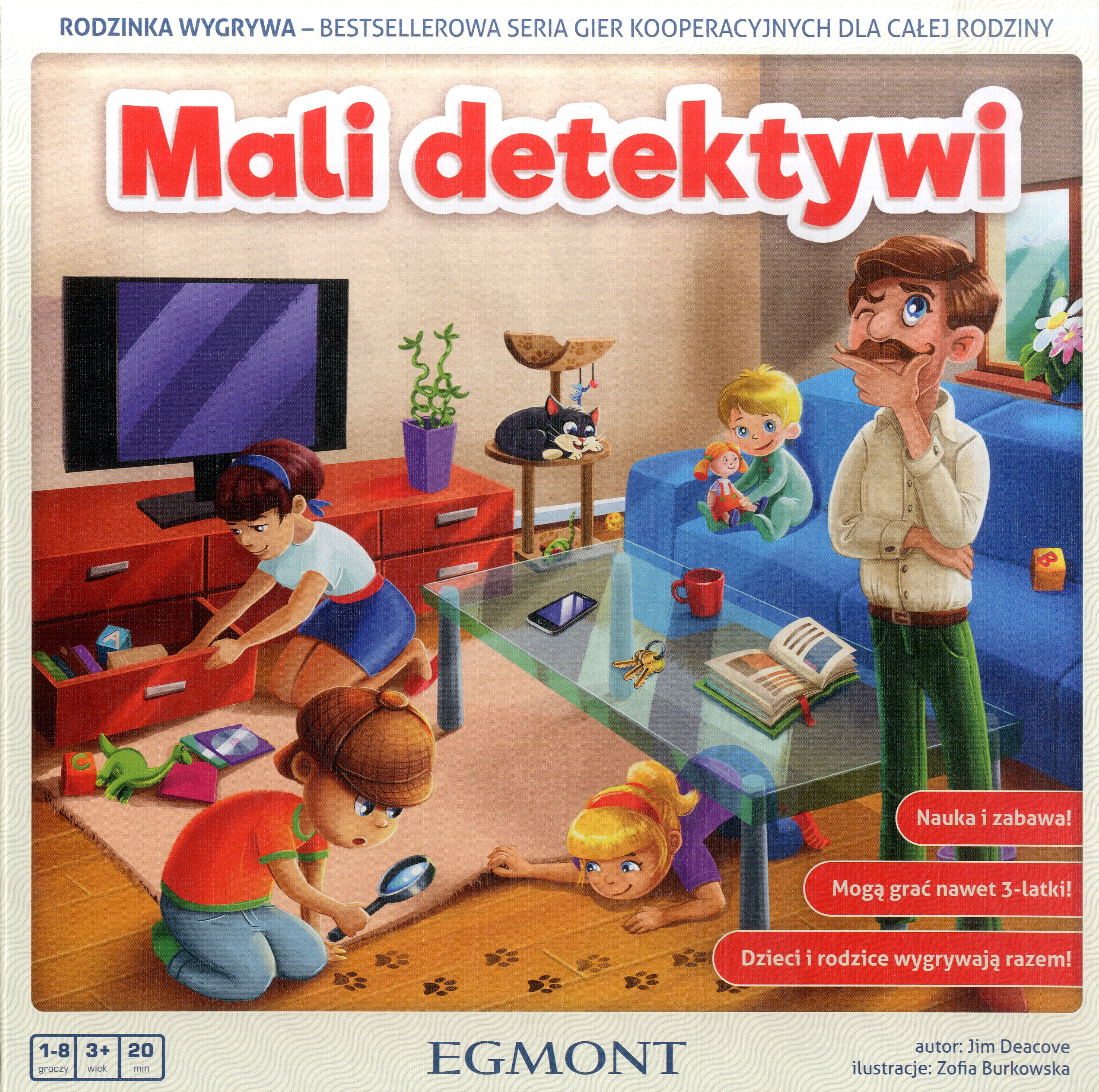 Mali detektywi / autor: Jim Deacove ; ilustracje Zofia Burkowska. - Warszawa : "Egmont Polska", copyright 2016. - 1 pudełko : wymiary pudełka 26x26x3 cm + instrukcja.