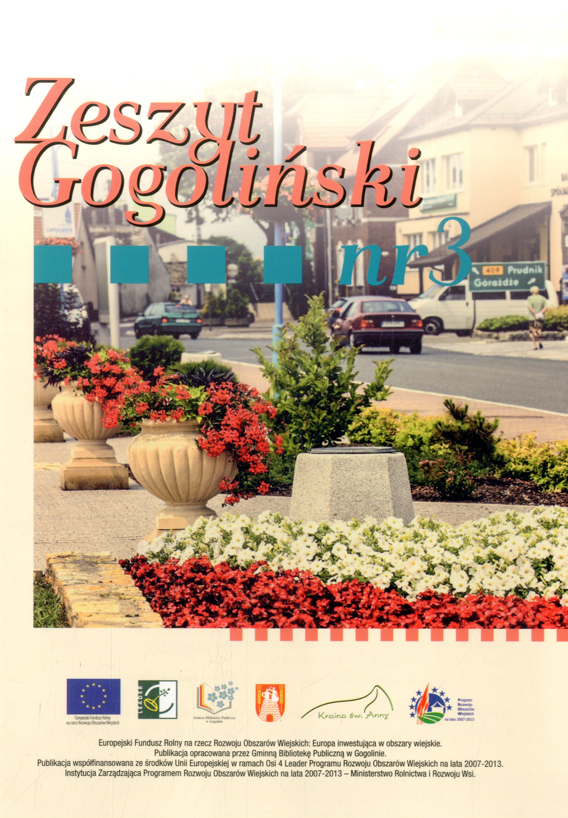 "Zeszyt Gogoliński" nr 3 został wydany w ramach projektu "Portrety znanych i cenionych... z wizytą w gogolińskiej bibliotece"; wnioskodawca - Gminna Biblioteka Publiczna w Gogolinie.