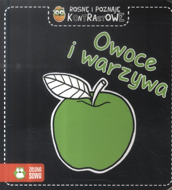 Czy wiesz, że gdy wzrok dziecka dopiero się kształtuje, najciekawsze są dla niego proste kontrastowe obrazki? Dopiero z czasem maluch zaczyna dostrzegać kolory, dlatego książeczka zawiera czarno-białe ilustracje z akcentami w kolorze zielonym – jedną z pierwszych barw, które widzi maluch. Oglądajcie razem z nim typowe owoce i warzywa, takie jak pomidor czy marchewka. Seria kontrastowych książek jest odpowiednia dla najmłodszych dzieci i wspomaga ich rozwój!