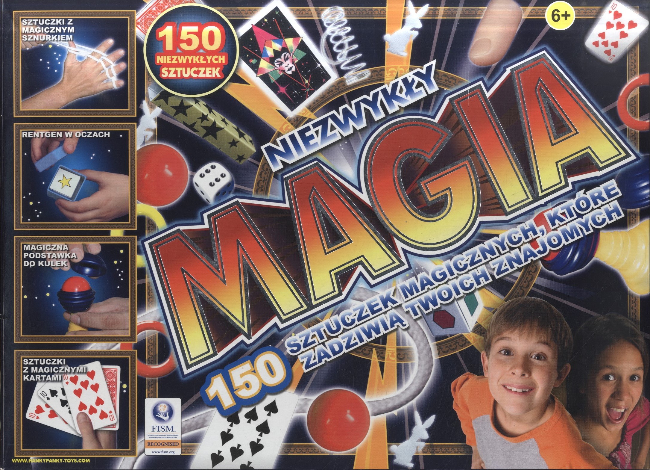Magia : 150 sztuczek magicznych, które zadziwią twoich znajomych. - Chonburi : Hanky Panky Toys, copyright 2014. - 1 pudełko ; 37x27x6 cm.