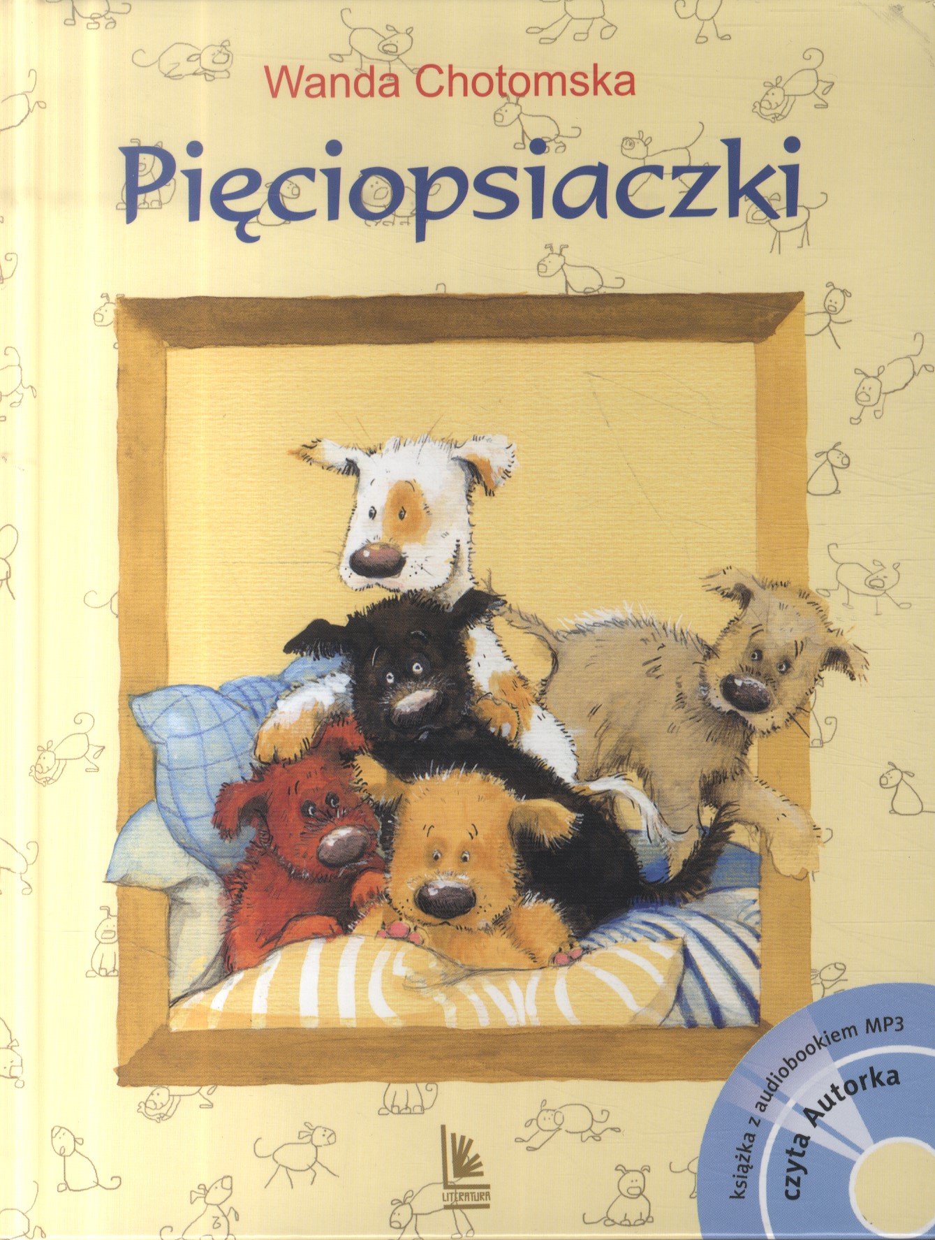 Pięciopsiaczki / Wanda Chotomska ; ilustracje Aneta Krella-Moch. - Wydanie 18. - Łódź : Wydawnictwo Literatura, 2018. - 70, [2] strony : ilustracje (w tym kolorowe) ; 23 cm. + audiobook.