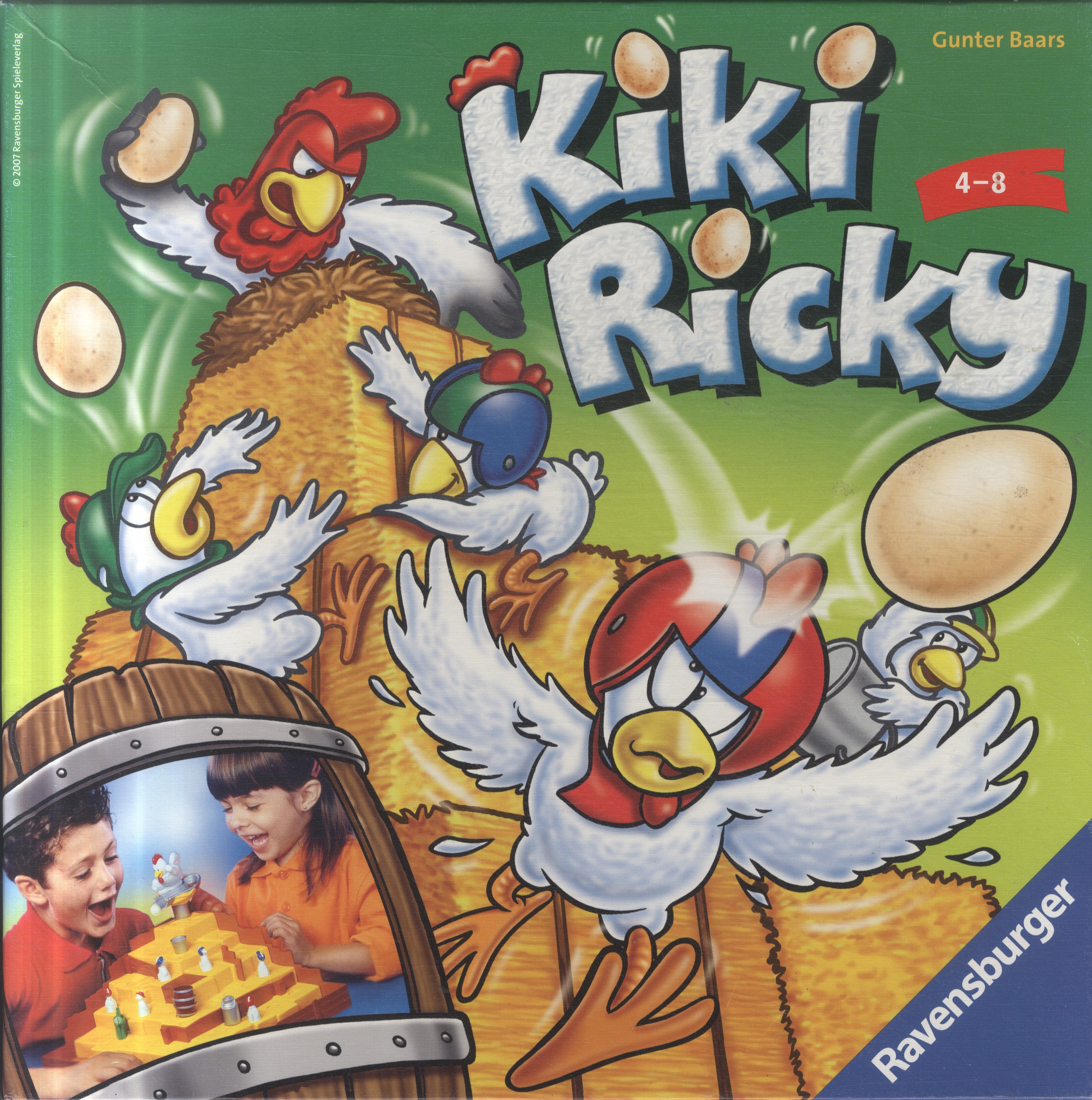 Gra, w której zamiast pionków występują kury, a na kostkach znajdują się obrazki przedstawiające nakrycia głowy. Gracz rzuca kostkami i przesuwa swoją kurę z odpowiednim nakryciem głowy o kolejne stopnie w górę. Musi być przy tym bardzo ostrożny, bo kogut potrafi rzucać jajkami. Wygrywa ten, kto jako pierwszy dotrze do gniazda koguta.