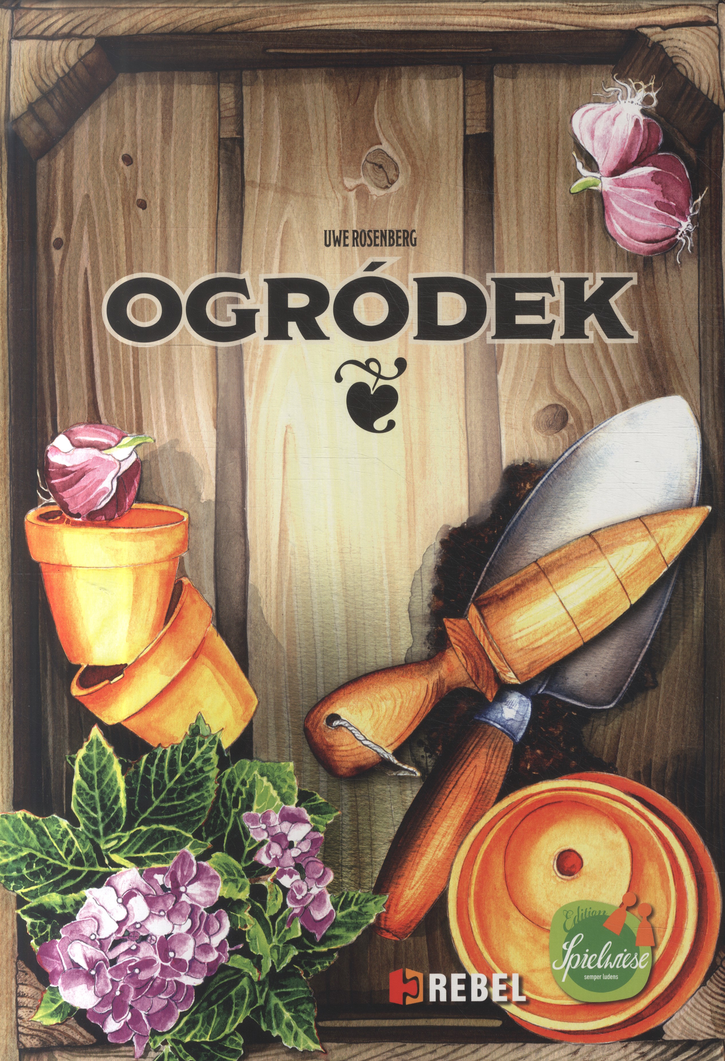 Zawartość pudełka: dwustronna plansza, 9 dwustronnych kafli rabatek, 36 płytek kwiatów, 16 żetonów doniczek, 30 żetonów kotów, 2 żetony uli, kość ogrodnika, żeton parasola, tekturowy model taczki, 12 niebieskich znaczników, 12 pomarańczowych znaczników), instrukcja.
